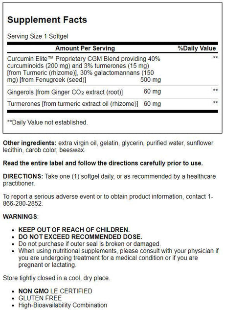 Life Extension Advanced Curcumin Elite Turmeric Extract Ginger & Turmerones -- 30 Softgels