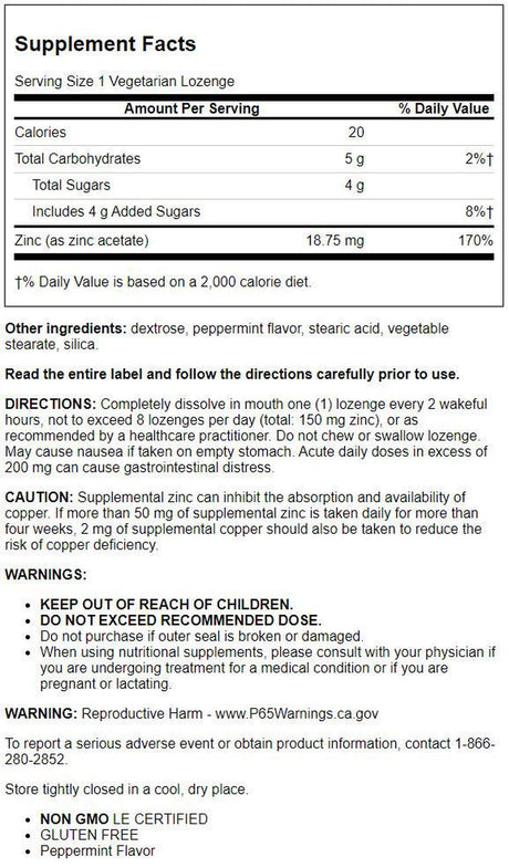 Life Extension - Enhanced Zinc Lozenges - 30 Vegetarian Lozenges