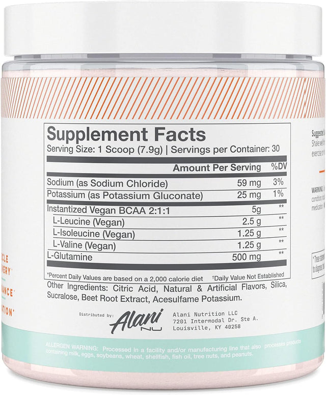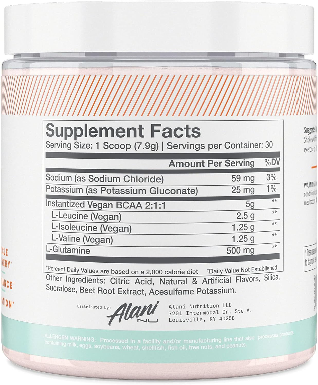 • PERFORM BETTER: Alani BCAA formula enhances endurance and hydration to keep you going in the gym when you need it the most. Our post workout blend of amino acids promotes muscle recovery while reducing muscle breakdown