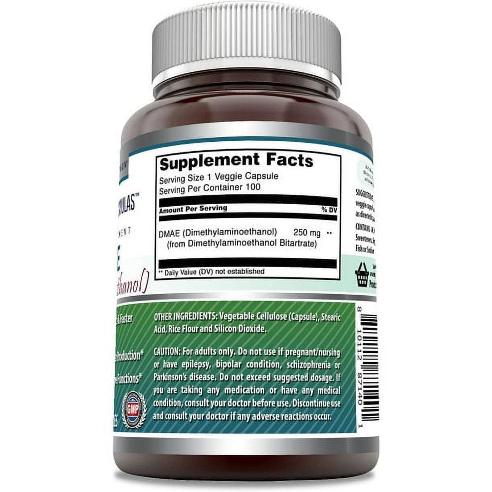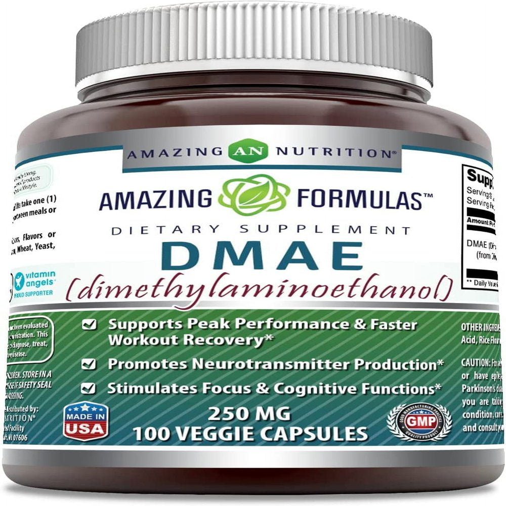 Amazing Formulas DMAE (Dimethylaminoethanol) 250Mg Veggie Capsules -Supports Performance & Faster Workout Recovery* -Stimulates Focus & Cognitive Functions* (100 Count)