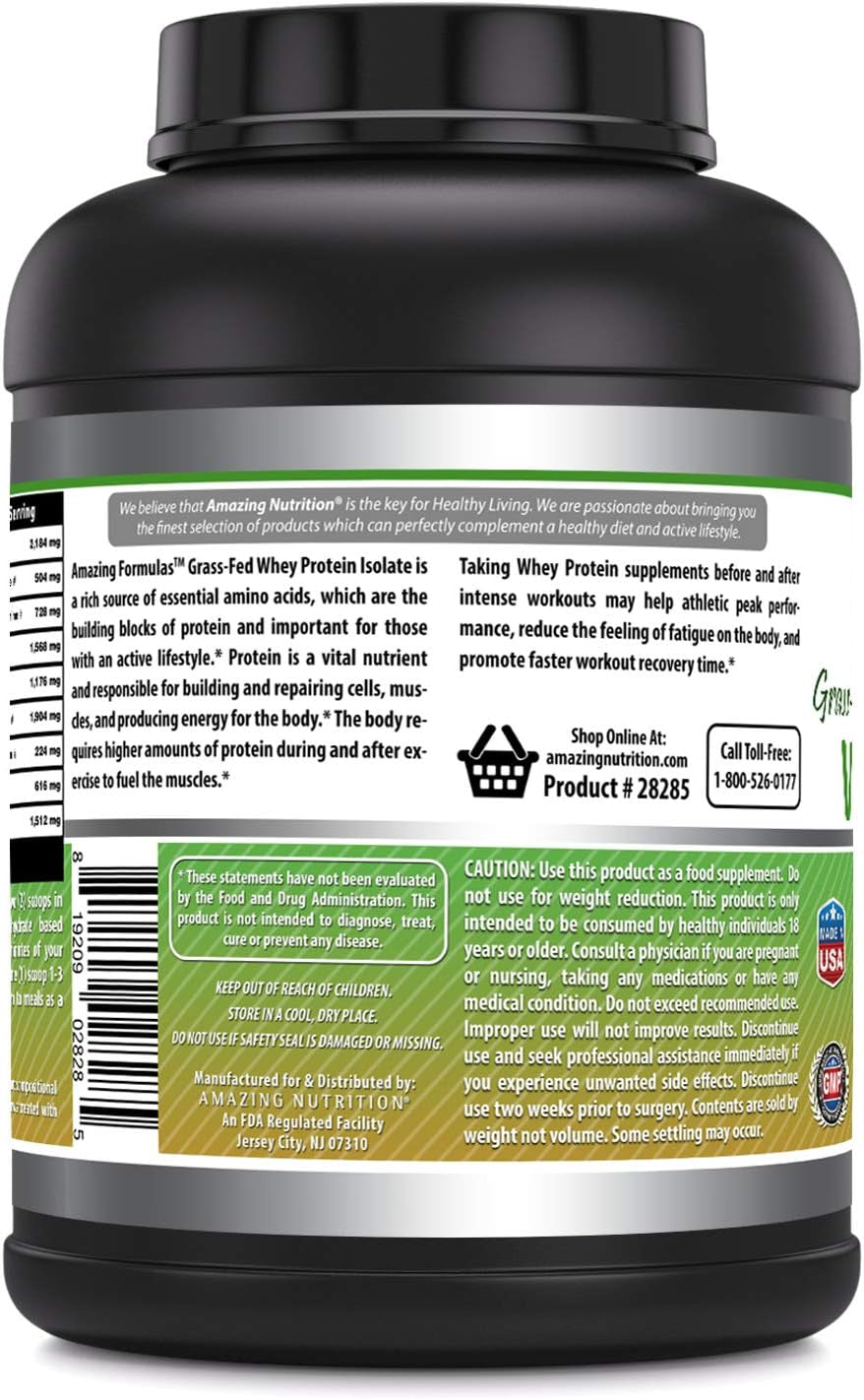 Amazing Formulas Grass-Fed Whey Protein Isolate - Unflavored 5 Lbs (2.26 Kg) - Non-Gmo - 25 G Protein - 81 Servings - 5.7 G Bcaas - 105 Calories