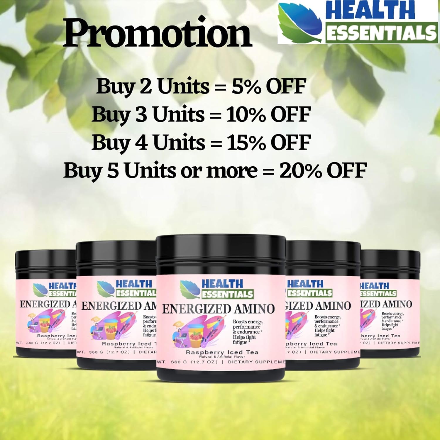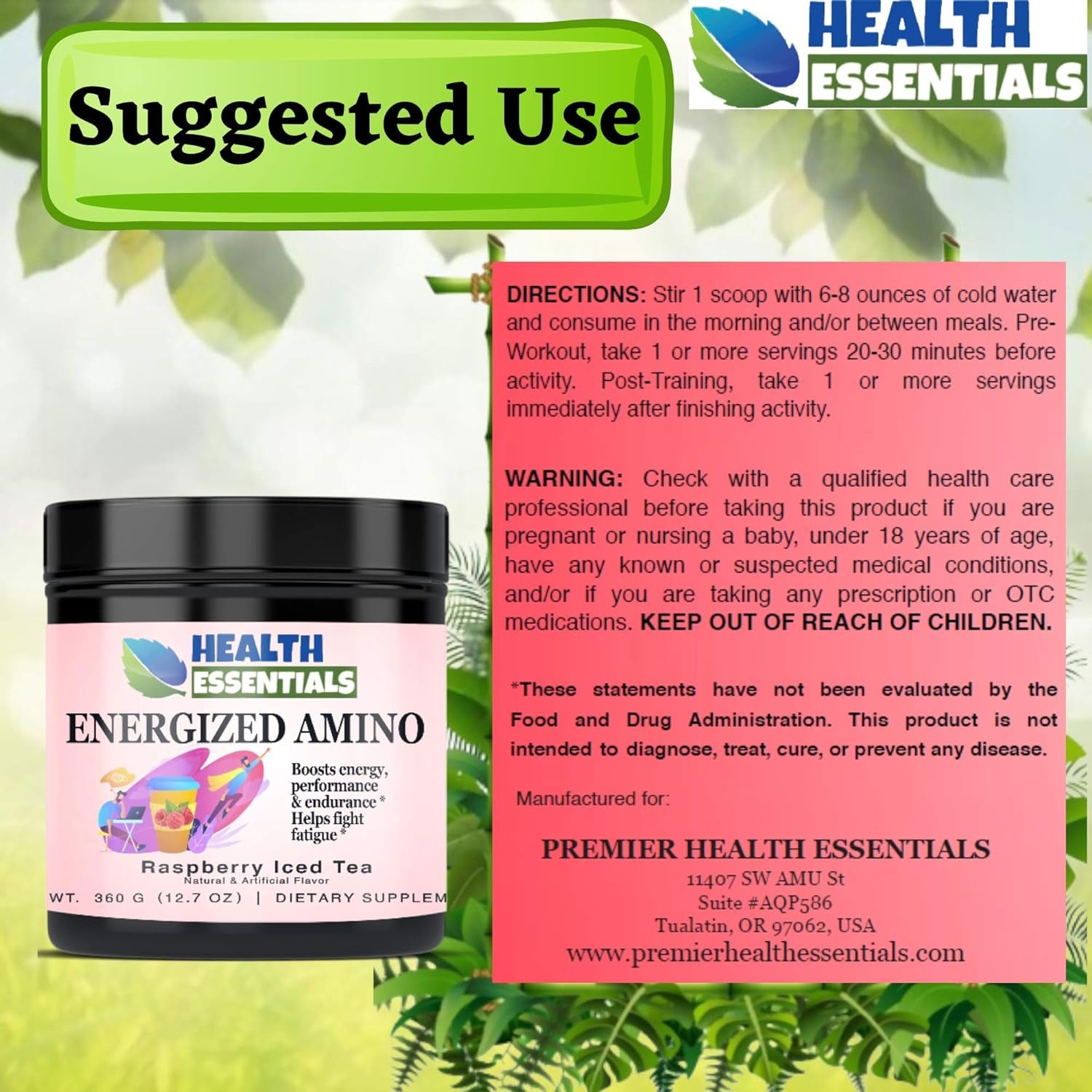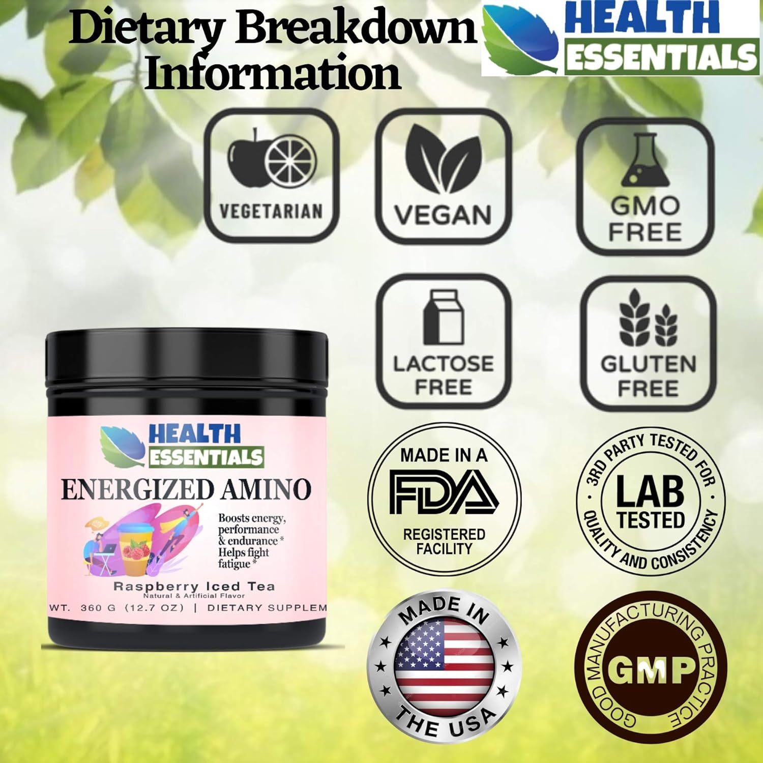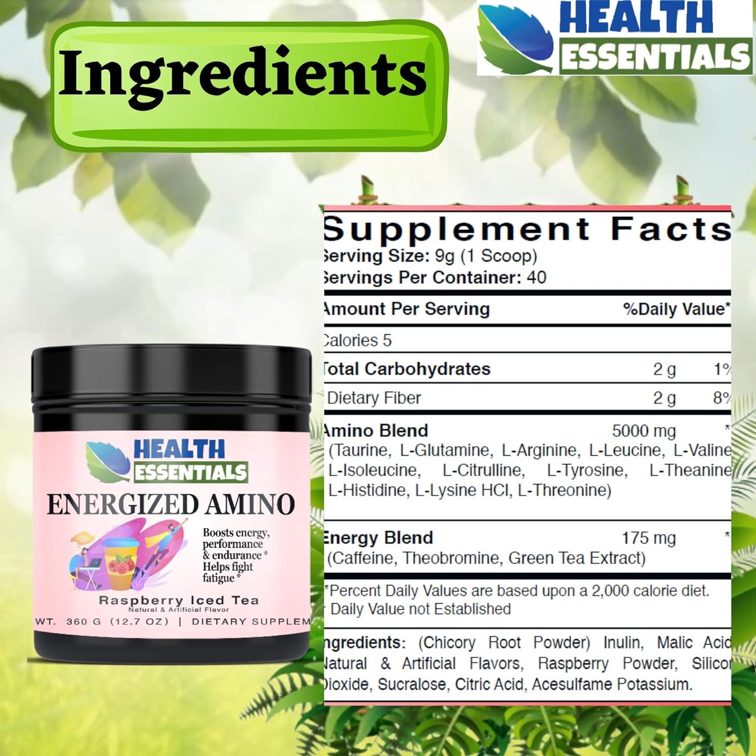 Amino Energy Raspberry Iced Tea, 40 Servings, Boosts Energy, Performance & Endurance, Helps Fight Fatigue, Vegetarian, Vegan, Non-Dairy, Gluten-Free, Non-Gmo. Made in America