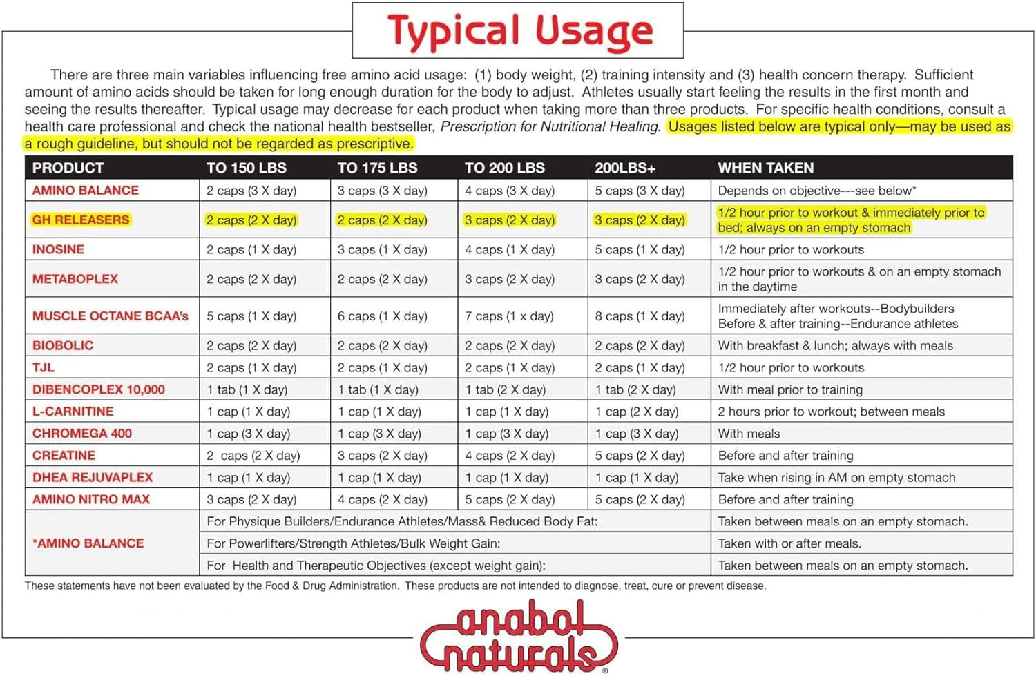 Even on those days when you do not go to the gym, our workout aminos stand ready to support muscle recovery and growth. Each capsule offers 800 mg of amino acid protein to boost your GH safely and naturally. Take 2-3 capsules on an empty stomach prior to working out and again at bedtime. For non-workout days, take 4-6 capsules on an empty stomach at bedtime or as directed by your healthcare professional.