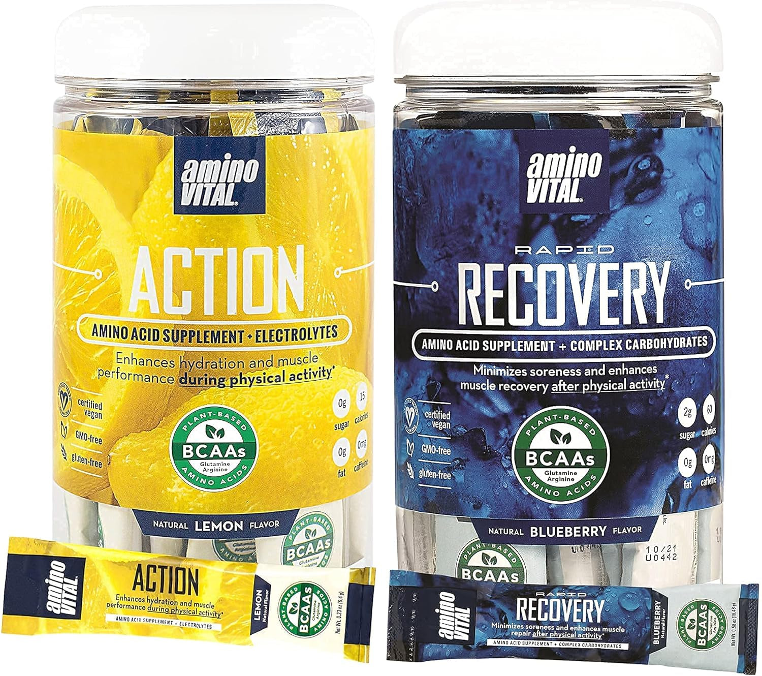 Amino Vital Action (Lemon) and Rapid Recovery Bundle- Vegan Bcaas Amino Acid Mix | Hydration and Endurance | Repair and Recovery