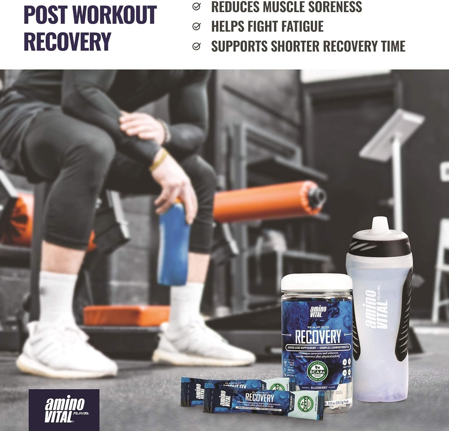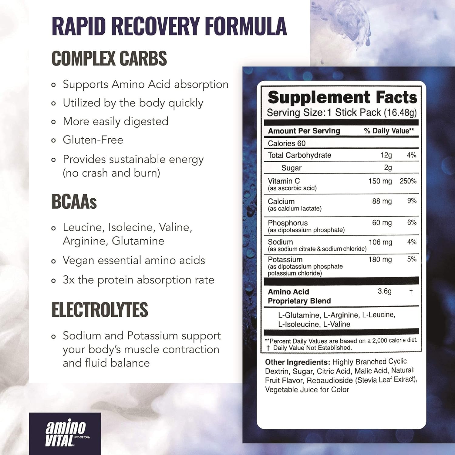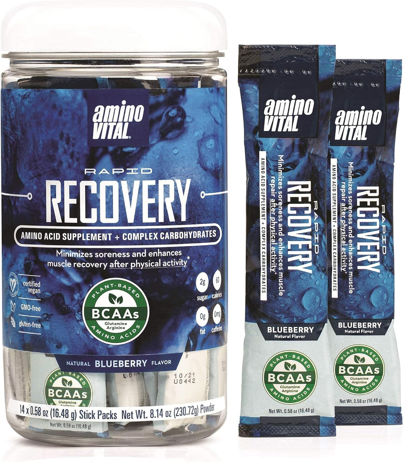 - RAPID RECOVERY: ADVANCED BCAA BLEND – aminoVITAL Rapid Recovery contains 5 essential amino acids (Leucine, Isoleucine, Valine, Arginine, Glutamine) that are beneficial for after workout recovery. Our amino acid mix with complex carbohydrates is designed to replenish your sore muscles after tough workouts.*