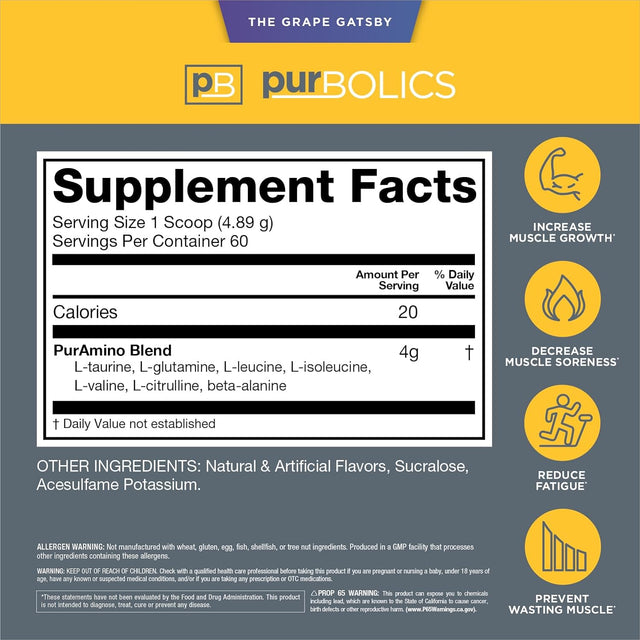 - AMINO ACIDS: PURBOLICS contains 4g of Free-Form Amino Acids. This is the ultimate hydration formula designed to help your body recover.