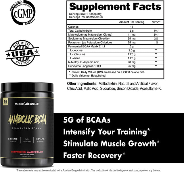 Anabolic Warfare Anabolic BCAA Powder Supplement Bcaas Amino Acids to Fuel Your Workout and Support Muscle Recovery (Strawberry Watermelon - 56 Servings)