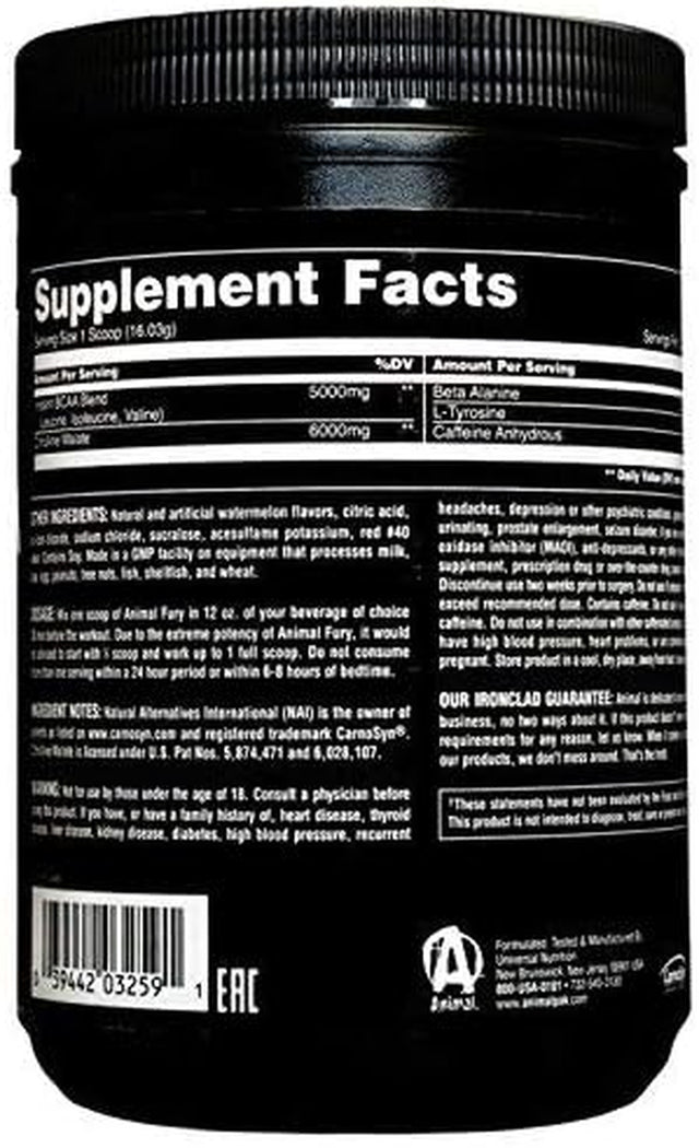 • Animal Fury powder mixes easily in 12oz. of water or your drink of choice, and packs a powerful and delicious taste for all athletes. Vein popping pumps, nitric oxide, high energy and focus every single workout.