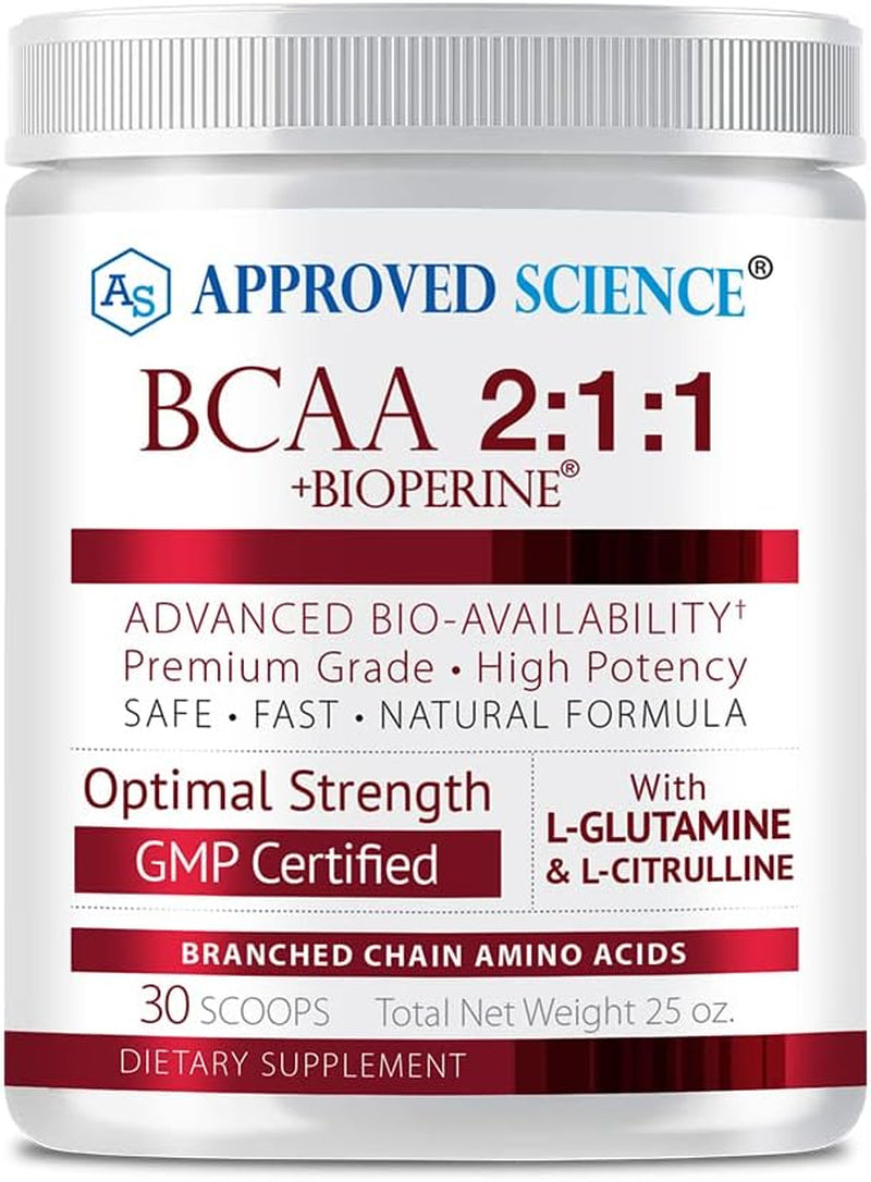 Approved Science® BCAA Powder - 2:1:1 BCAA Ratio - 3500 Mg L-Leucine - Fruit Punch Flavor - 25 Ounce - 30 Servings - Workout Boost, Endurance, Prevent Burnout - Bioperine - Vegan Friendly - 1 Tub