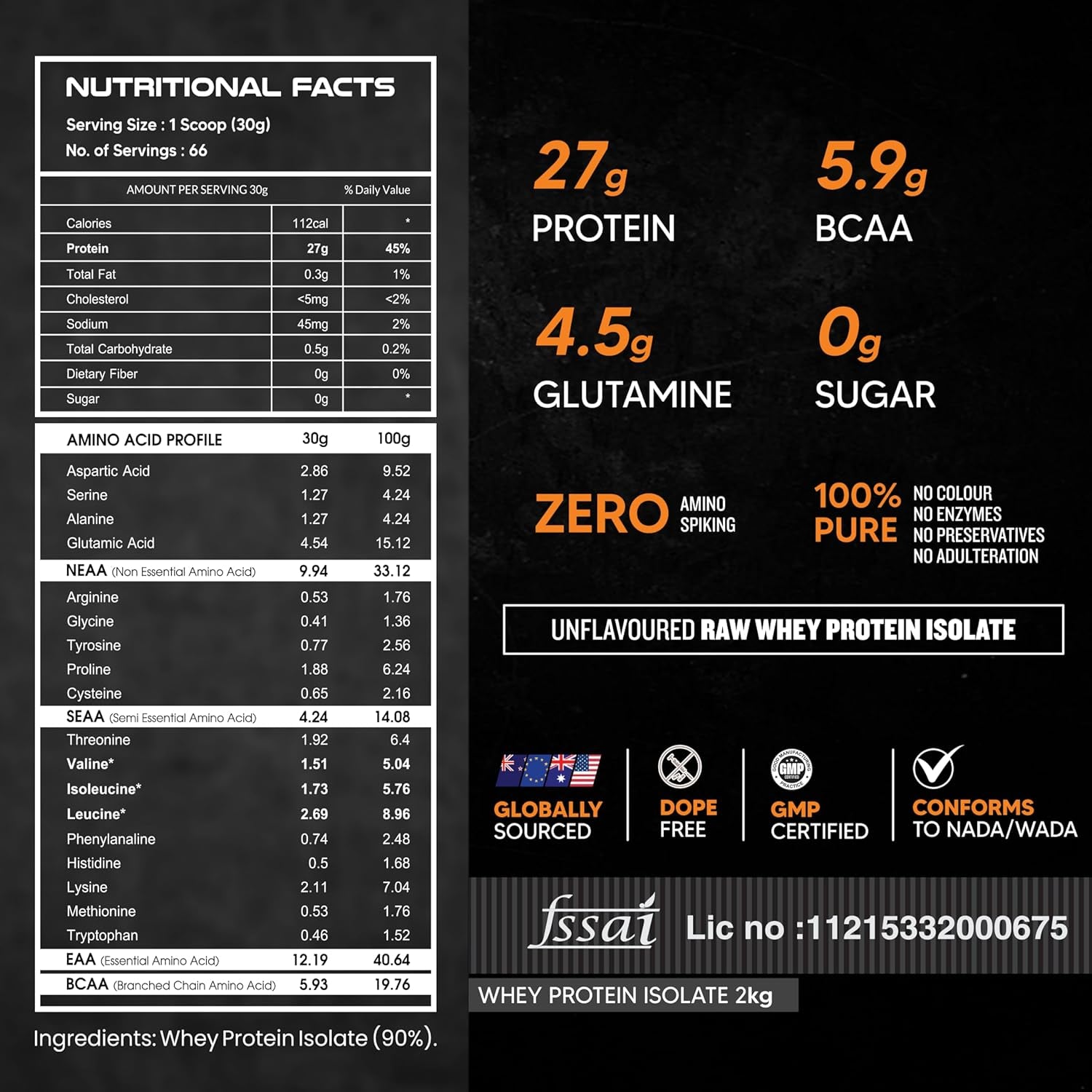 - All natural: as-it-is nutrition whey protein isolate is 100% pure, natural, and unflavoured. It does not contain aspartame, sucralose, or acesulfame-k. As a result, you get the best product in its purest form as-it-is. Free from any doping ingredients as per nada / wada.