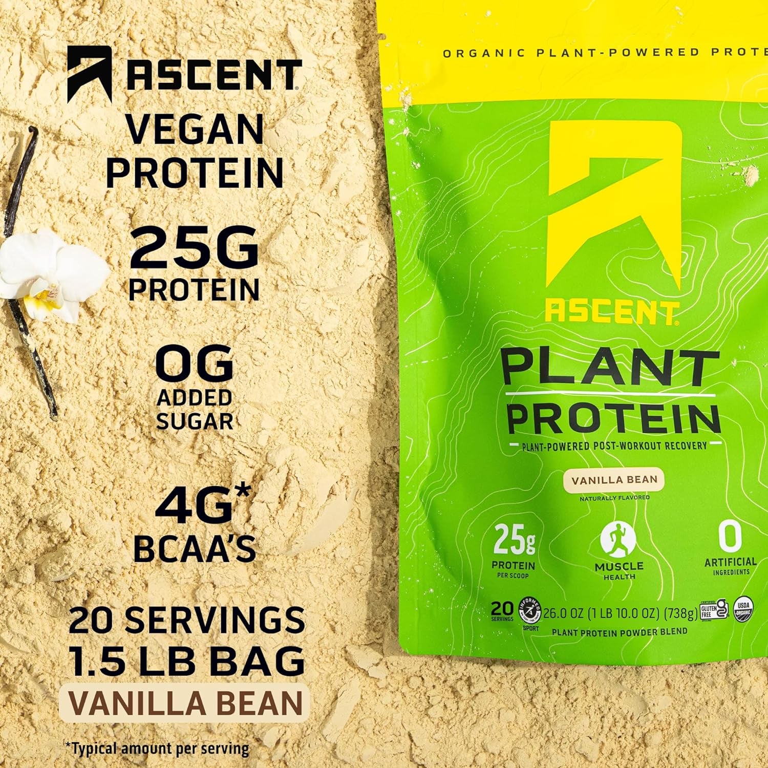 - Plant Protein - Ascent vegan vanilla protein powder is a plant-based, post-workout recovery drink packed with naturally occurring amino acids & zero added sugar