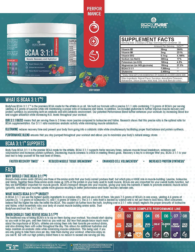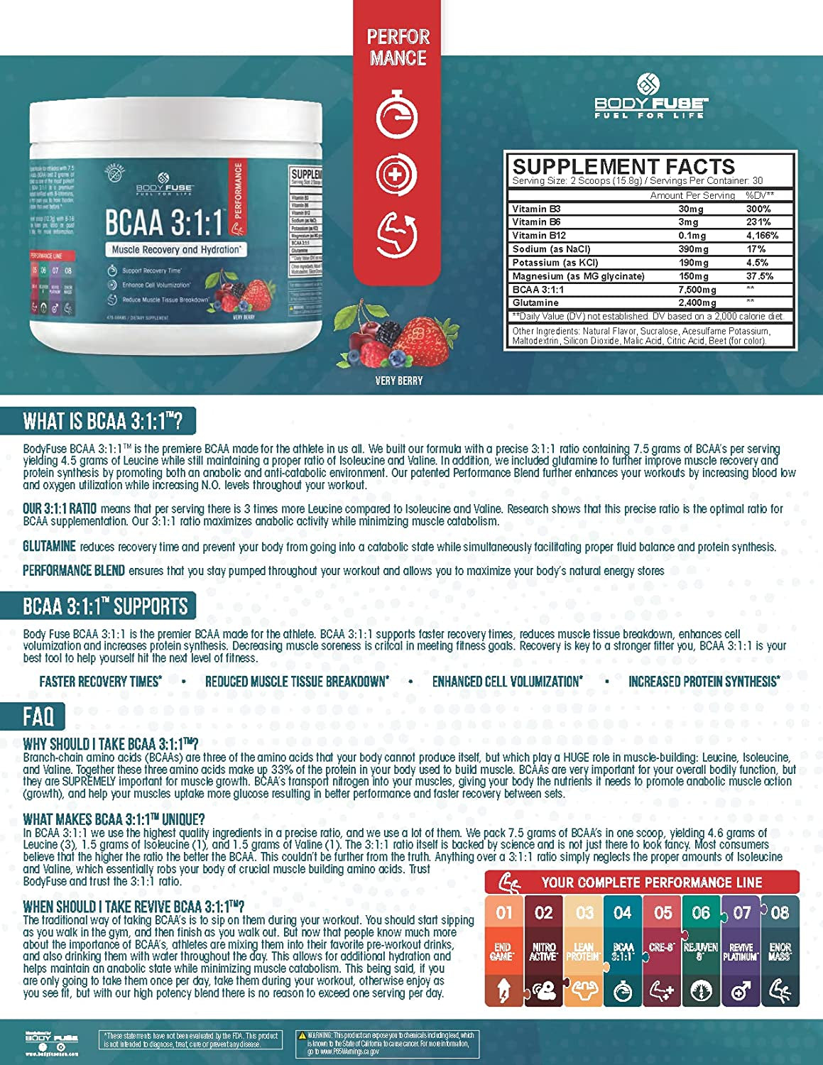 | Product Benefits | function(f) {var _np=(window.P._namespace("DetailPageProductOverviewTemplatesJava"));if(_np.guardFatal){_np.guardFatal(f)(_np);}else{f(_np);}}(function(P) { P.when('A').execute(function(A){ A.on('a:truncate:po-attribute-truncate-7:updated', function(data) { var isTruncated = !data.truncateInstance.getIfTextFits(); var seeMoreElement = document.getElementById('po-attribute-see-more-id-7'); if(seeMoreElement) { seeMoreElement.style.display = isTruncated ? '' : 'none'; } }) }); })); Body Fuse BCAA 3:1:1 supports Faster Recovery Times, Reduced Muscle Tissue Breakdown, Enhanced Cell Volumization, and Increased Protein Synthesis. See more |