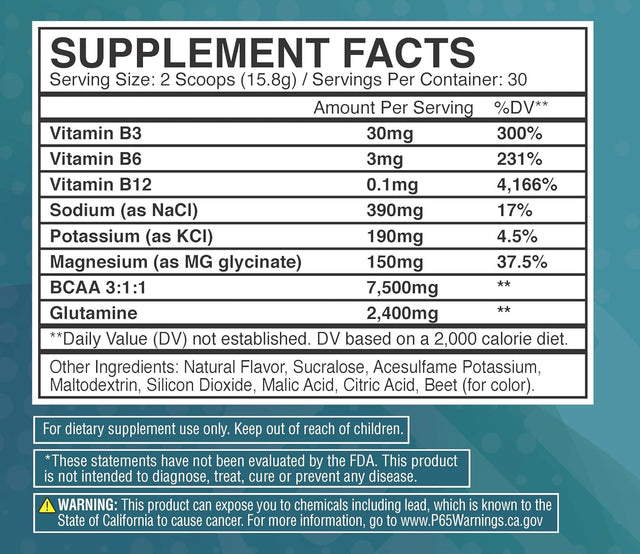 | Special Ingredients | function(f) {var _np=(window.P._namespace("DetailPageProductOverviewTemplatesJava"));if(_np.guardFatal){_np.guardFatal(f)(_np);}else{f(_np);}}(function(P) { P.when('A').execute(function(A){ A.on('a:truncate:po-attribute-truncate-6:updated', function(data) { var isTruncated = !data.truncateInstance.getIfTextFits(); var seeMoreElement = document.getElementById('po-attribute-see-more-id-6'); if(seeMoreElement) { seeMoreElement.style.display = isTruncated ? '' : 'none'; } }) }); })); Vitamin C, Thiamin, Riboflavin, Niacin, Vitamin B6, Vitamin B12, Pantothenic Acid, Calcium, Magnesium, Potassium, L-Leucine, L-Isoleucine, L-Valine, L-Glutamine, N-Acetyl L-Glutamine, L-Alanyl L-Glutamine See more |