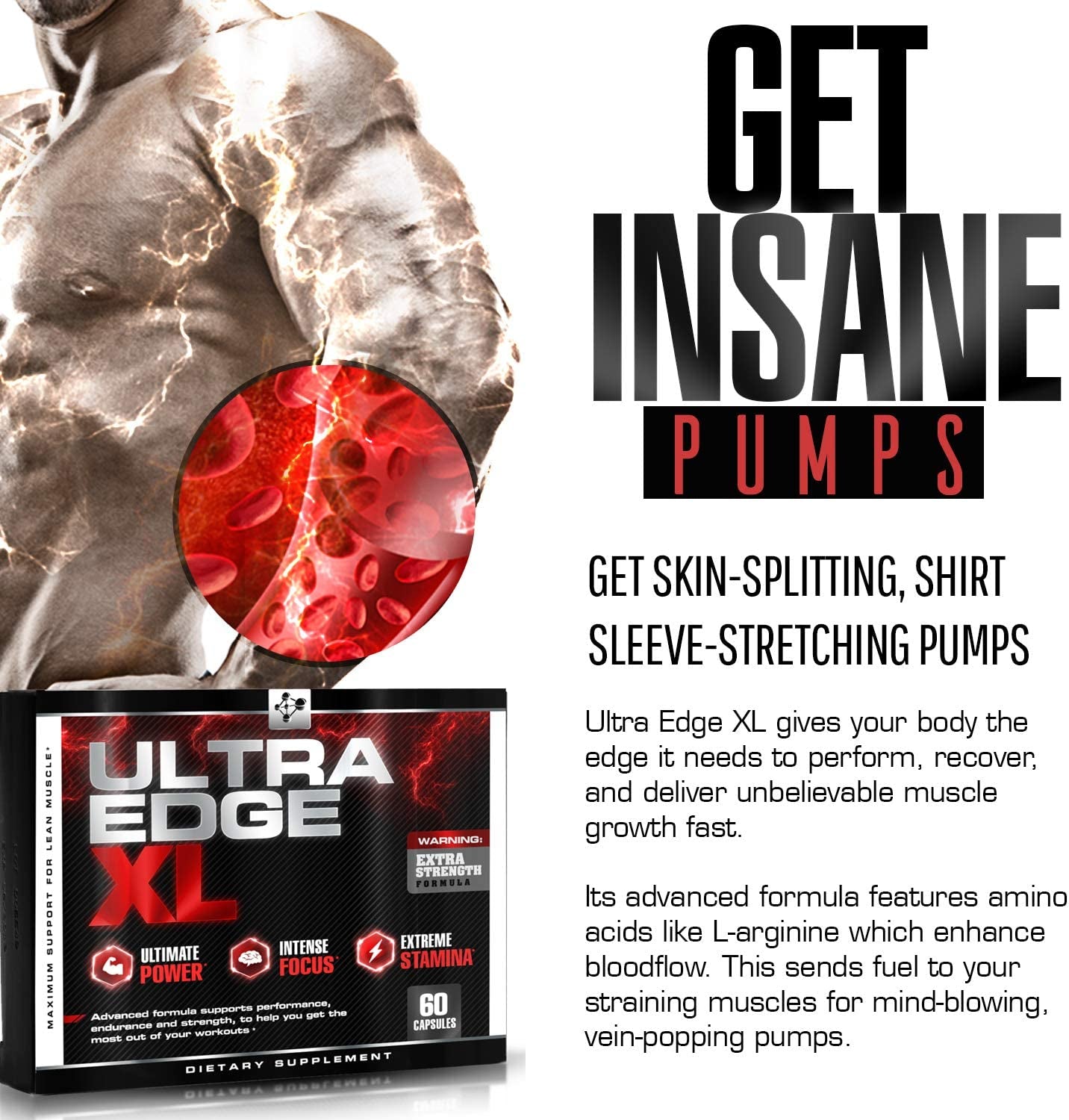 • PACK ON LEAN MUSCLE AND GET RIPPED FAST - Ultra Edge XL contains a powerful blend of vasodilating BCAAs which boost nitric oxide production. This floods your working muscles with blood and oxygen, giving them the fuel they need to grow huge, fast.