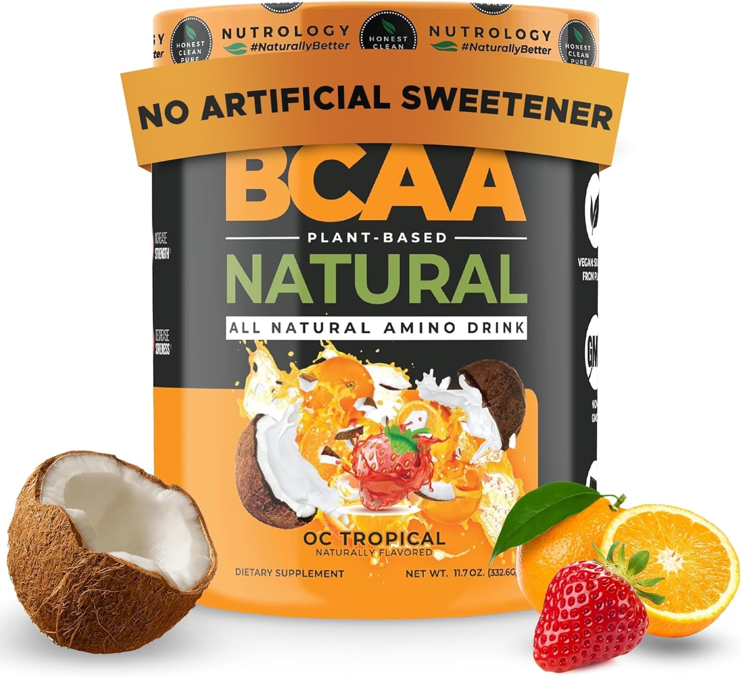 BCAA Natural Powder - Non-Gmo, Plant Sourced Amino Acid Drink Mix, Improve Performance, Enhance Recovery - Boost Immune Health, No Artificial Colors, Gluten Free - Tropical - (30 Servings)