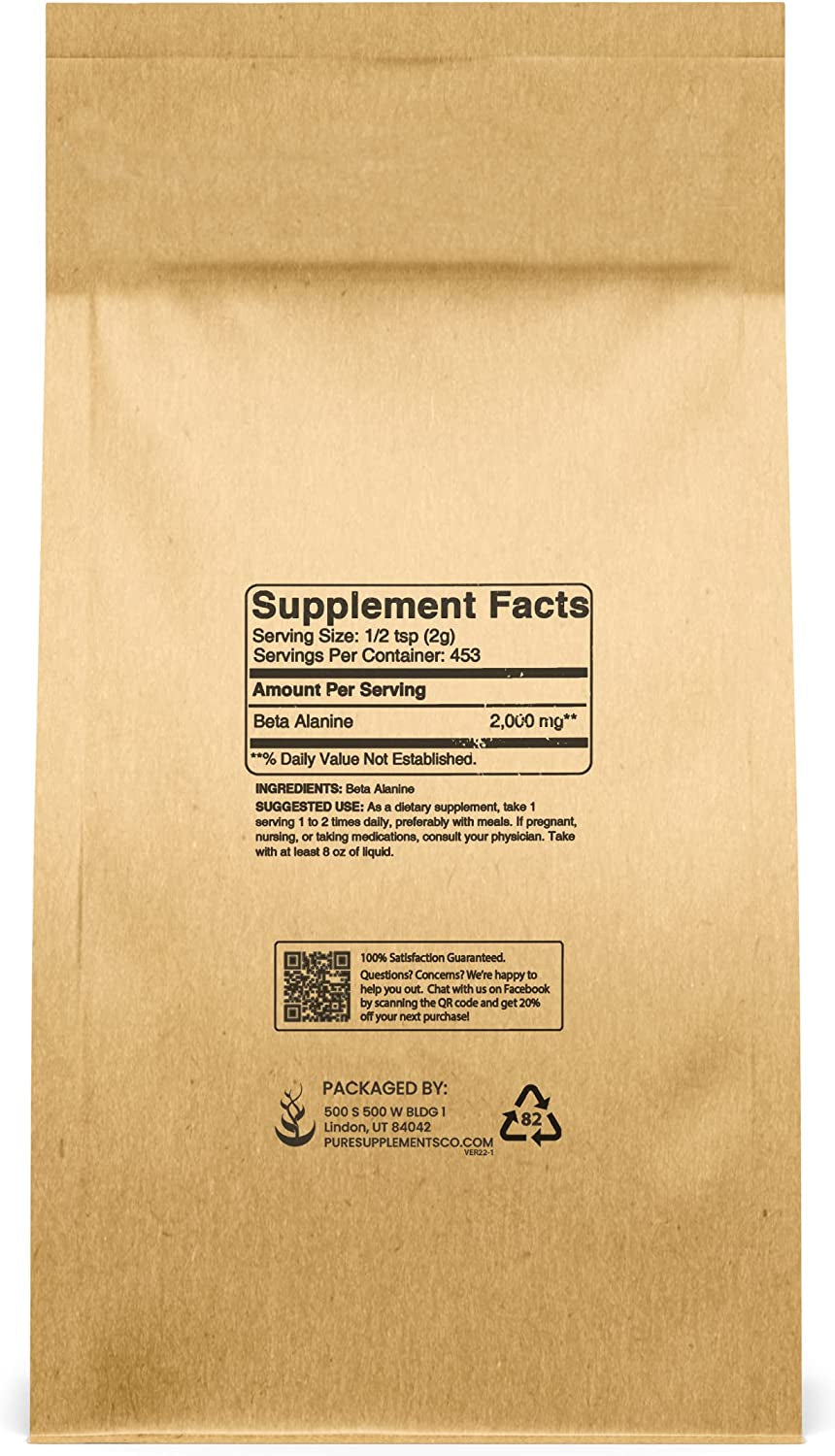 Beta Alanine Powder (2Lb), Always Pure Non-Essential Amino Acid, Gluten-Free, Non-Gmo