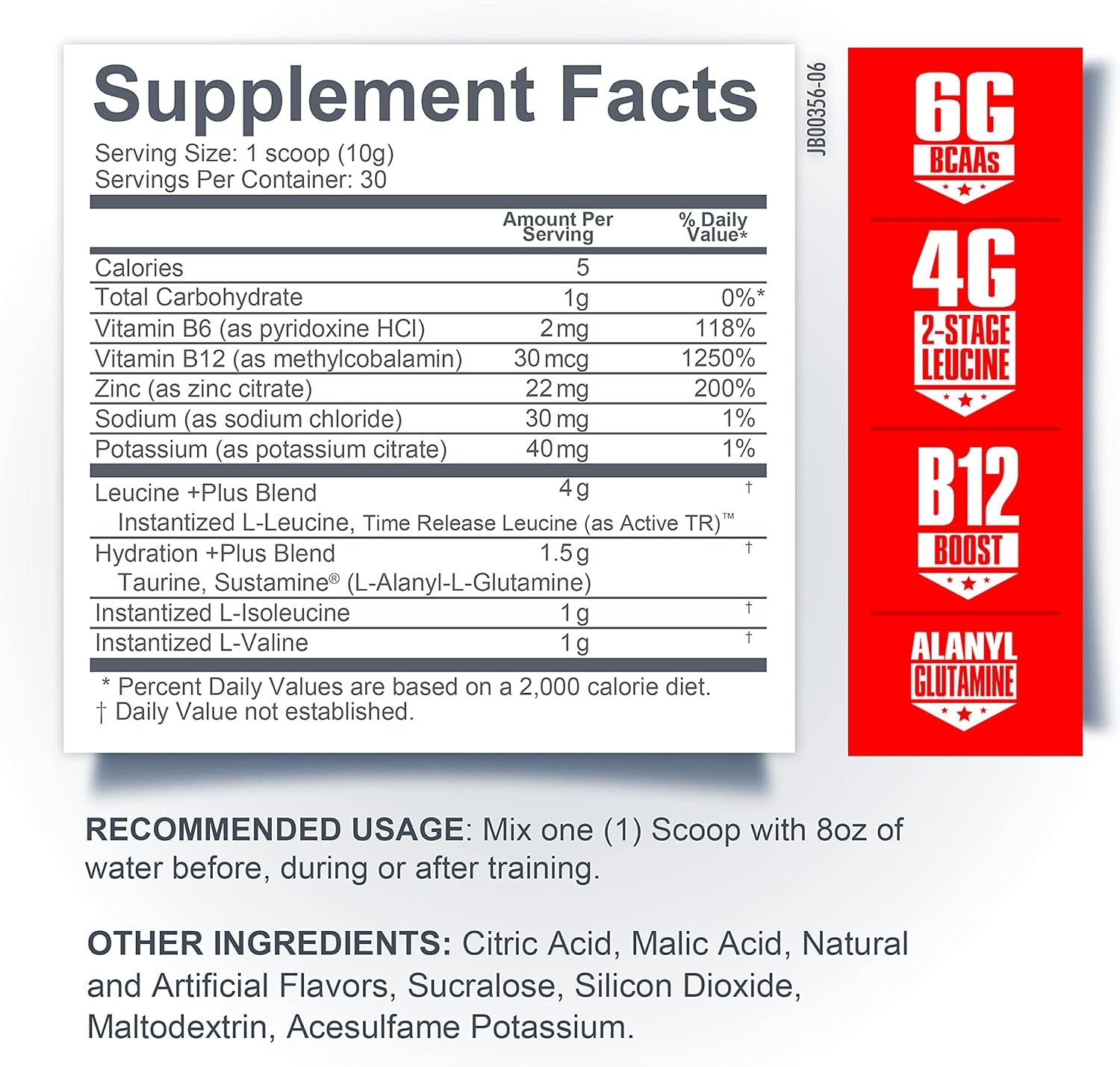 - ✔ 4:1:1 RATIO OF BCAA’S FOR MORE LEUCINE PER SERVING.