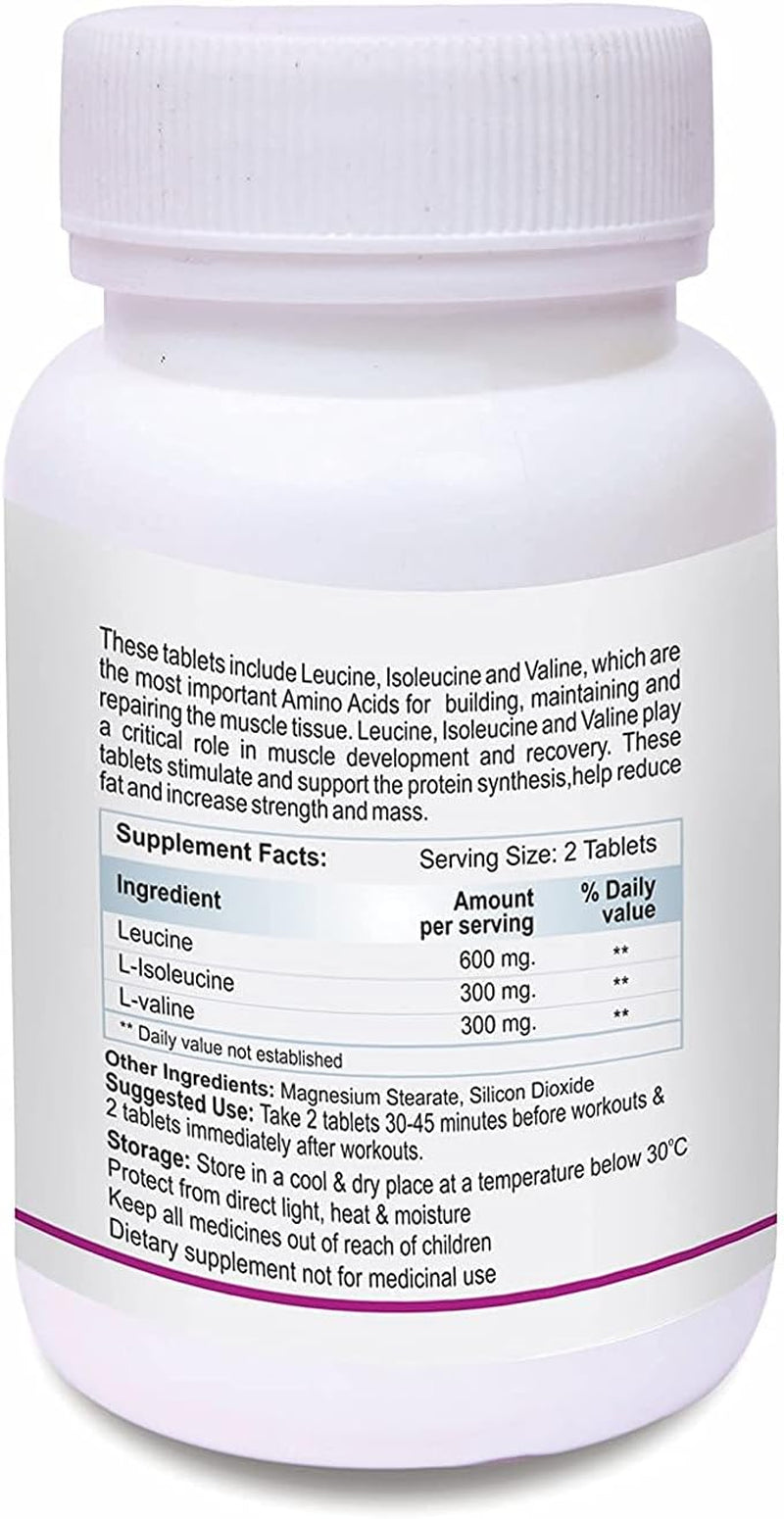 These tablets include leucine, isoleucine and valine, which are the most important amino acids for building, maintaining and repairing the muscle tissue. Leucine, isoleucine and valine play a critical role in muscle development and recovery. These tablets stimulate and support the protein synthesis, help reduce fat and increase strength and mass.