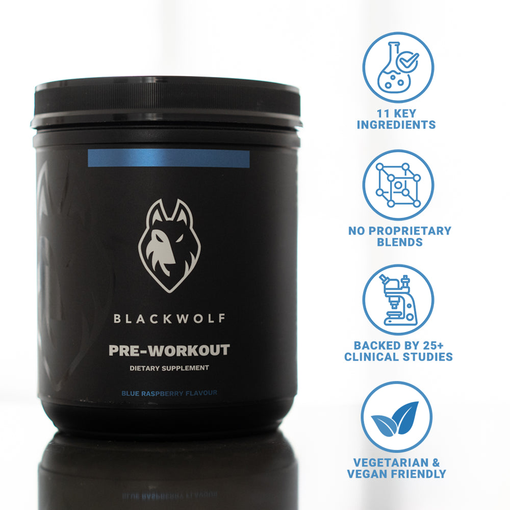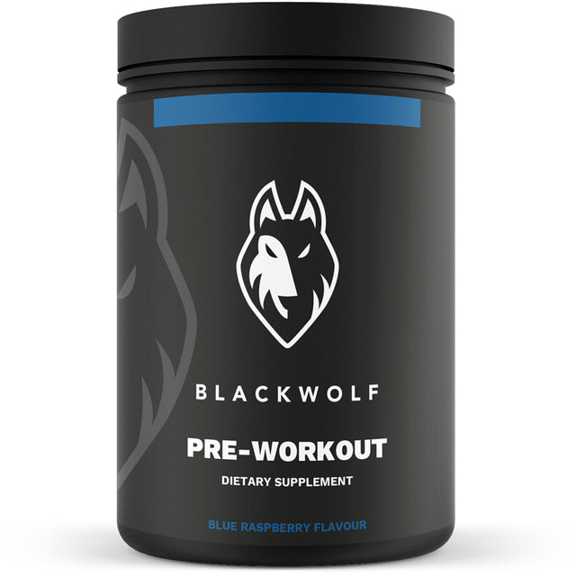Blackwolf Pre Workout Powder Blue Raspberry, Caffeine, L-Citrulline & Amino Acids, 22 Servings