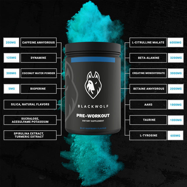 Blackwolf Pre Workout Powder Blue Raspberry, Caffeine, L-Citrulline & Amino Acids, 22 Servings is backordered and will ship as soon as it is back in stock.