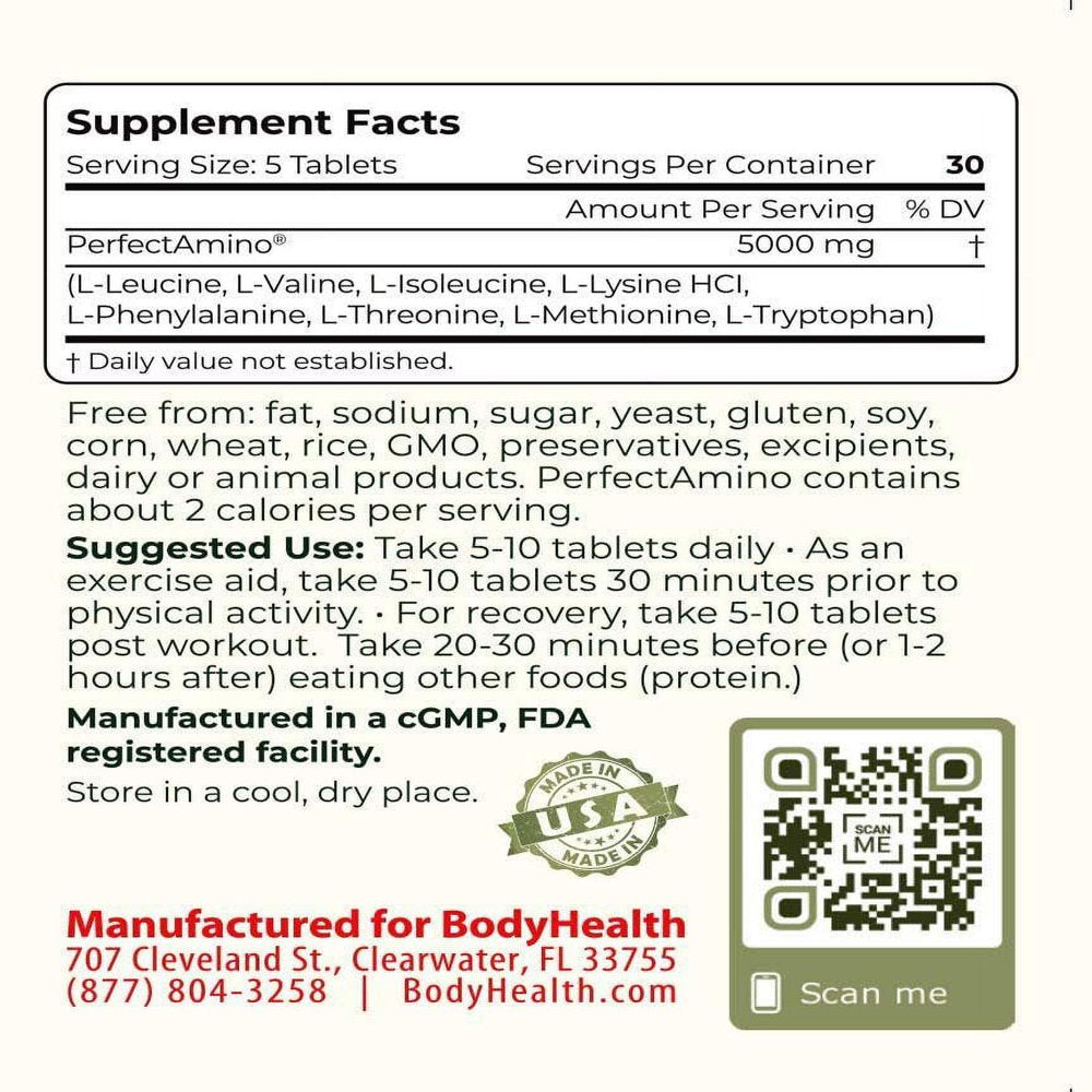 Bodyhealth Perfectamino Tablets (150Ct), All 8 Essential Amino Acids with Bcaas