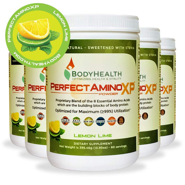 Bodyhealth Perfectamino XP Lemon Lime, Best Pre/Post Workout Recovery Drink, 8 Essential Amino Acids Energy Supplement with 50% Bcaas, 100% Organic, 99% Utilization, 30 Servings