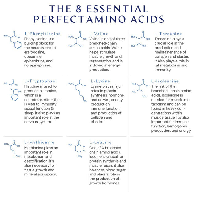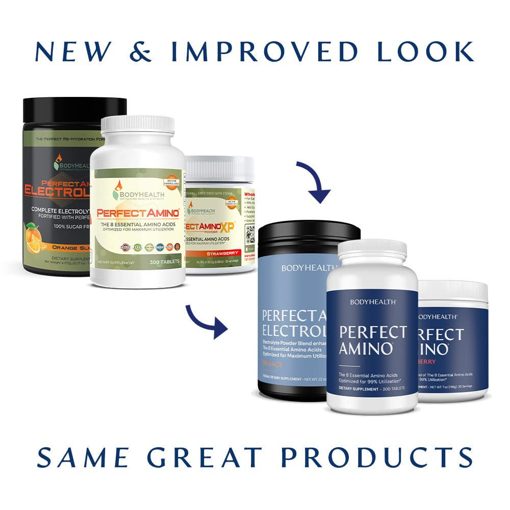 - NEW LOOK, SAME GREAT PRODUCT. You may receive either product packaging during this transition. FORMULATED WITH 8 ESSENTIAL AMINO ACIDS: We included ALL 8 essential amino acids in our specially formulated PerfectAmino XP for 99% bio-availability. Your body gets maximum utilization, including BCAAs to ensure optimum nutrition & recovery.