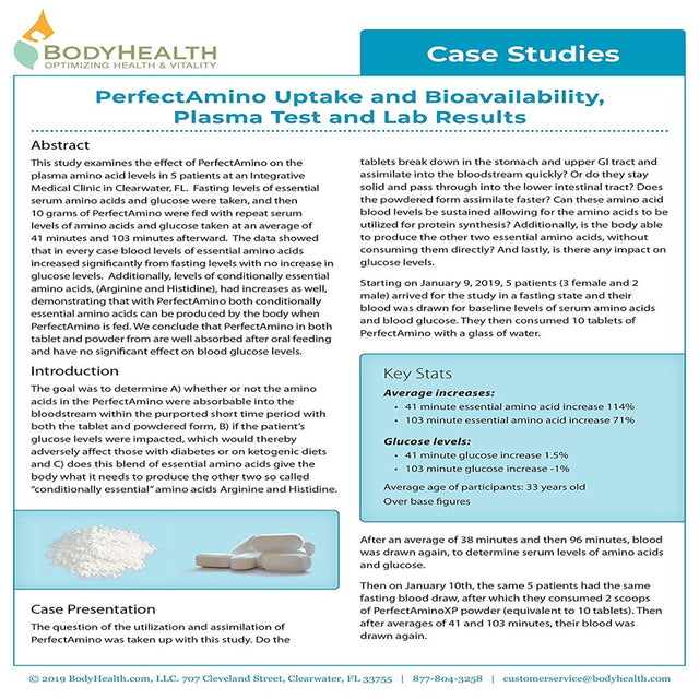- PerfectAmino is perfectly formulated PerfectAmino is a comprehensive formula featuring a unique combination of all 8 essential amino acids (50% of which are branched chain amino acids, or BCAAs).