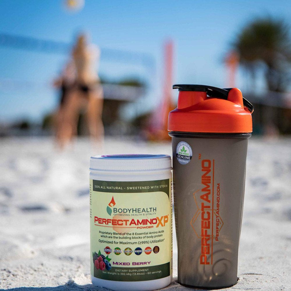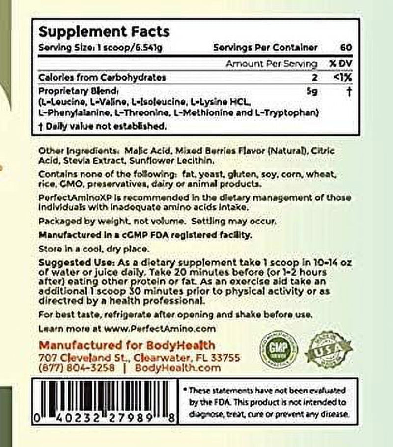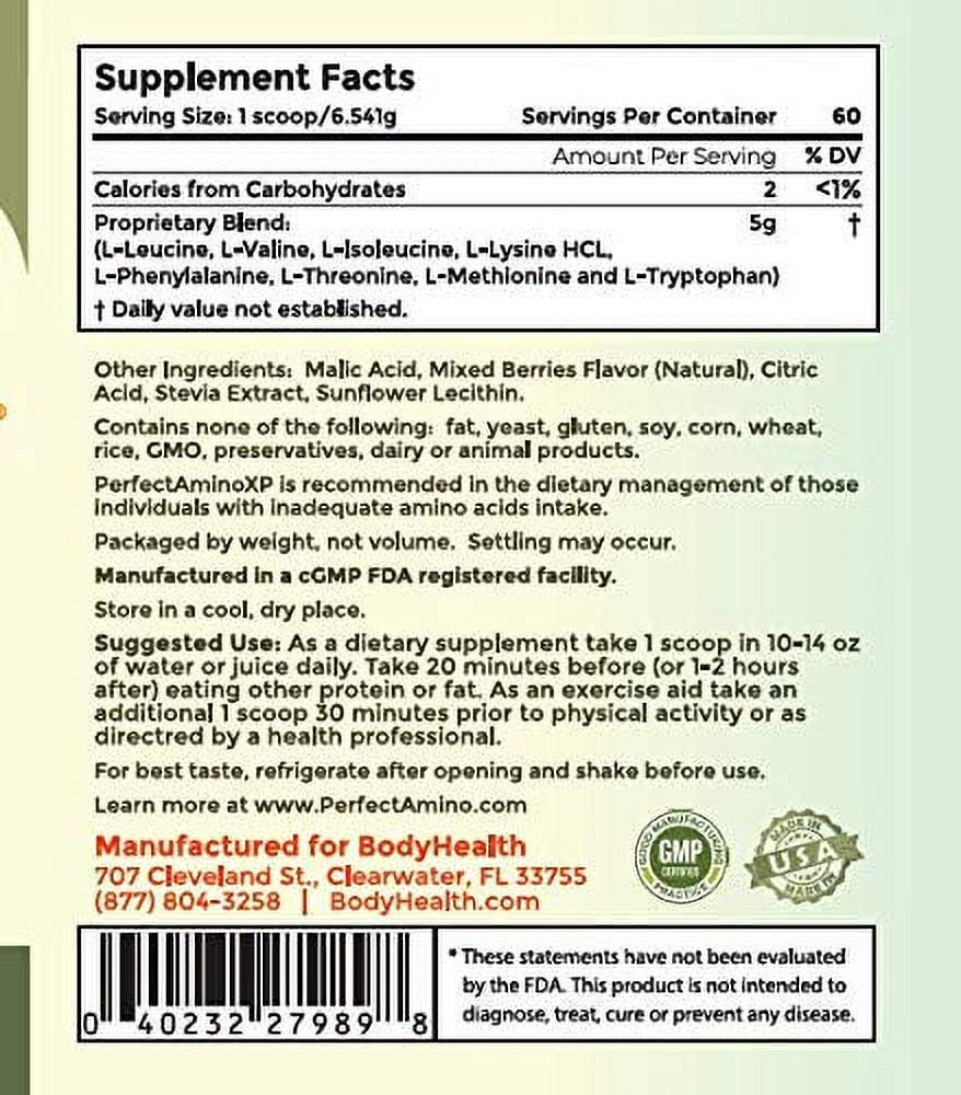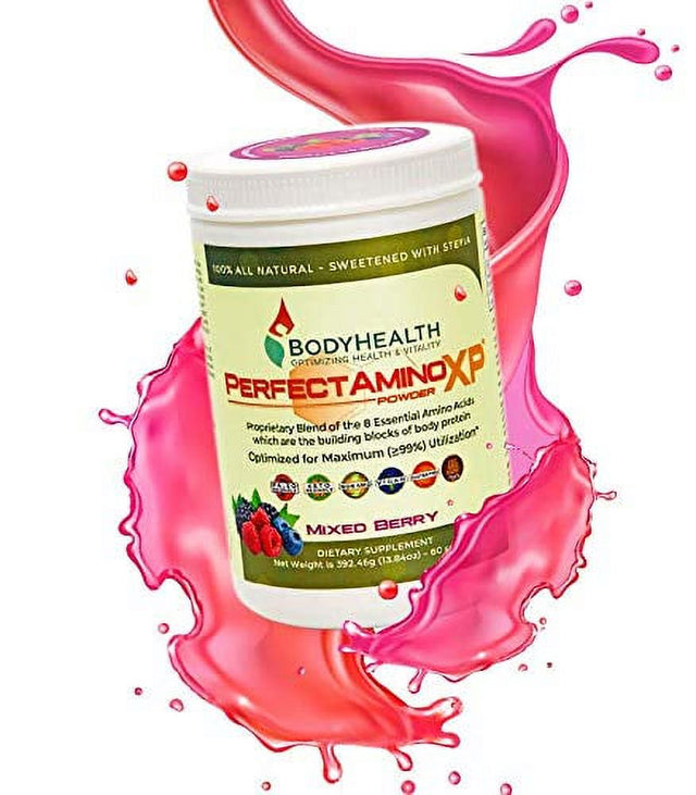 Bodyhealth Perfectamino XP Mixed Berry (60 Servings) Best Pre/Post Workout Recovery Drink, 8 Essential Amino Acids Energy Supplement with 50% Bcaas, 100% Organic, 99% Utilization for Maximum Power