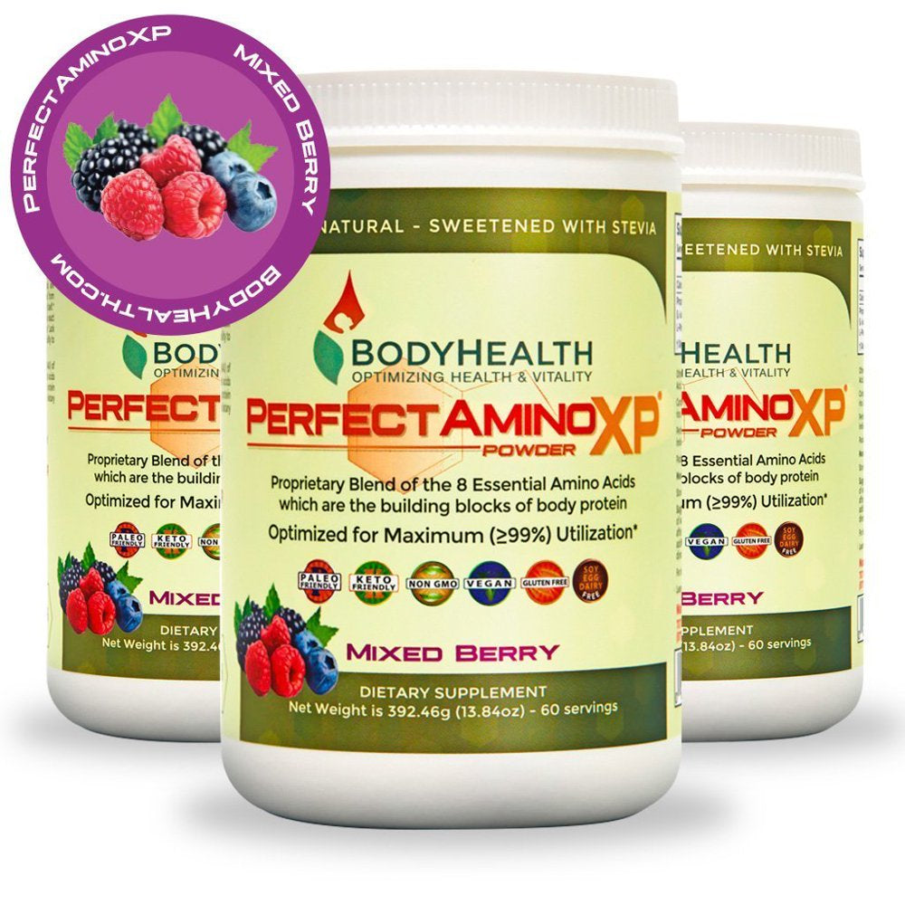 Bodyhealth Perfectamino XP Mixed Berry (60 Servings) Best Pre/Post Workout Recovery Drink, 8 Essential Amino Acids Energy Supplement with 50% Bcaas, 100% Organic, 99% Utilization for Maximum Power - 60 Servings (Pack Of 1) is backordered and will ship as soon as it is back in stock.