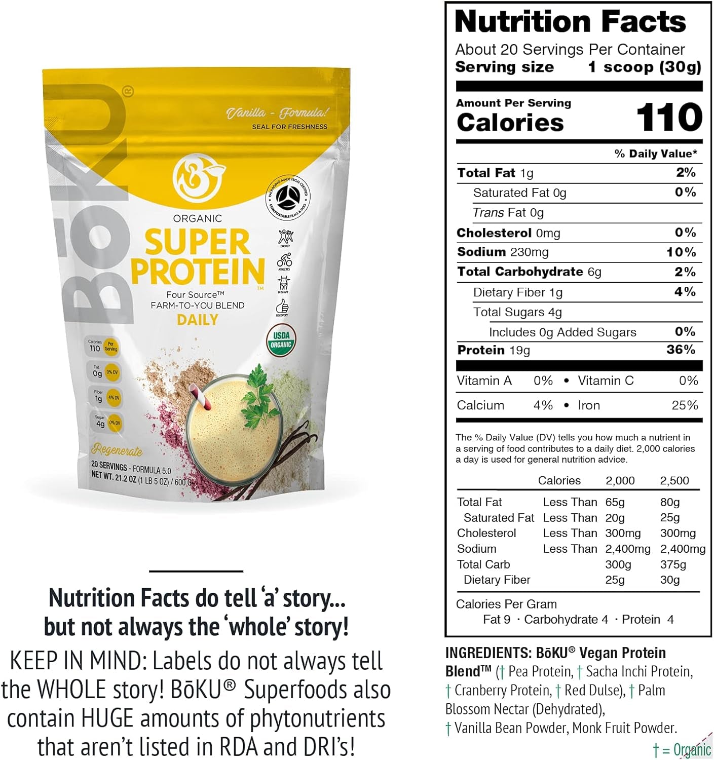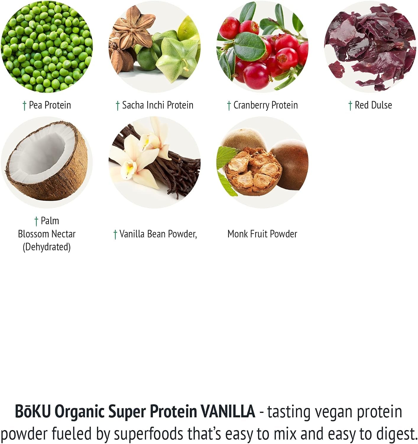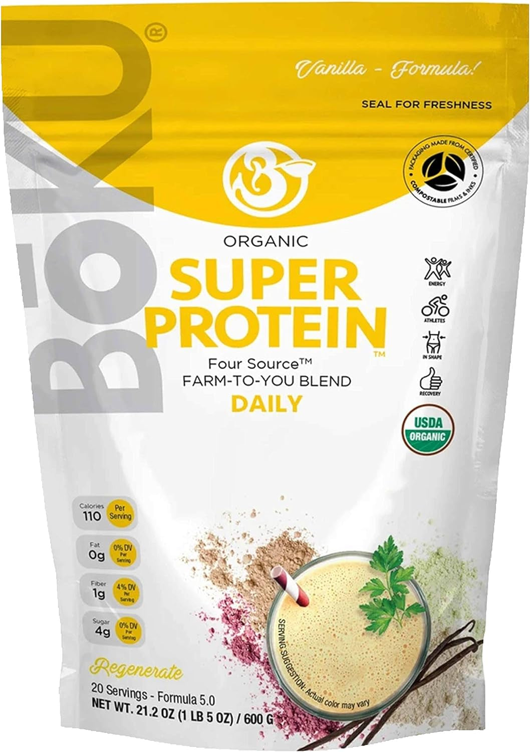 • HEALTHY AND ACTIVE WITH ORGANIC PROTEIN - Make a great vanilla protein shake. BōKU Organic Super Protein Vanilla delivers 19 grams of protein per serving. It has all essential amino acids to fuel your body, keeping you strong and active. Each 21.2 oz package contains 20 servings.
