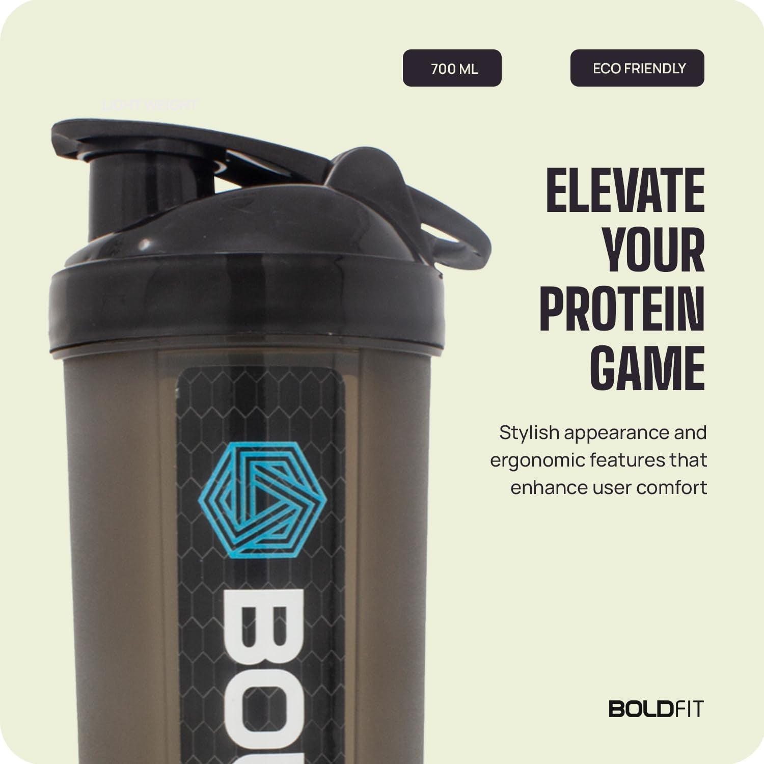 Boldfit Plastic Gym Typhoon Shaker Bottle, Leakproof Guarantee Sipper Bottle Ideal for Protein, Preworkout and Bcaas, Bpa-Free Material (Typhoon Black, 700 Milliliters)