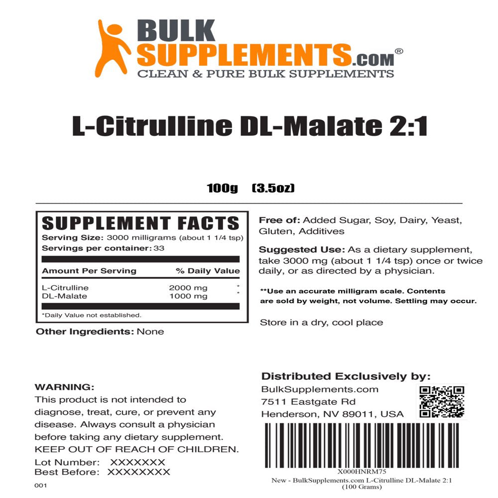 • L-Citrulline DL-Malate 2:1 Powder, 3g by BulkSupplements.com