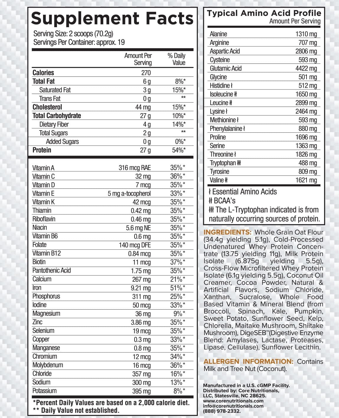 Core Nutritionals always lets the consumer know exactly what is in its products and ensures quality. Also, all products are manufactured in the U.S. and in cGMP facilities.