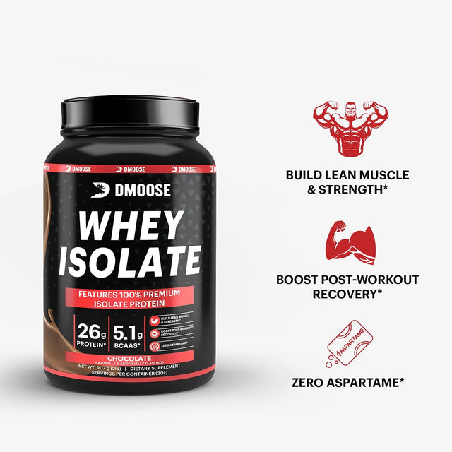 Dmoose Whey Isolate Protein Powder I 26 G Protein I 5.1G BCAAS I Gluten Free I Helps Maintain Muscle Mass & Decrease Recovery Time I Chocolate & Vanilla I 30 Servings