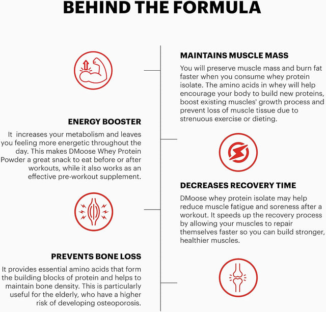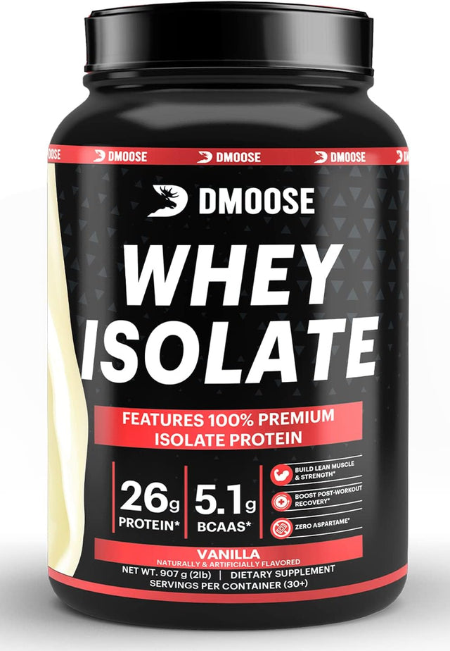 Dmoose Whey Isolate Protein Powder I 26 G Protein I 5.1G BCAAS I Gluten Free I Helps Maintain Muscle Mass & Decrease Recovery Time I Chocolate & Vanilla I 30 Servings - Vanilla is backordered and will ship as soon as it is back in stock.