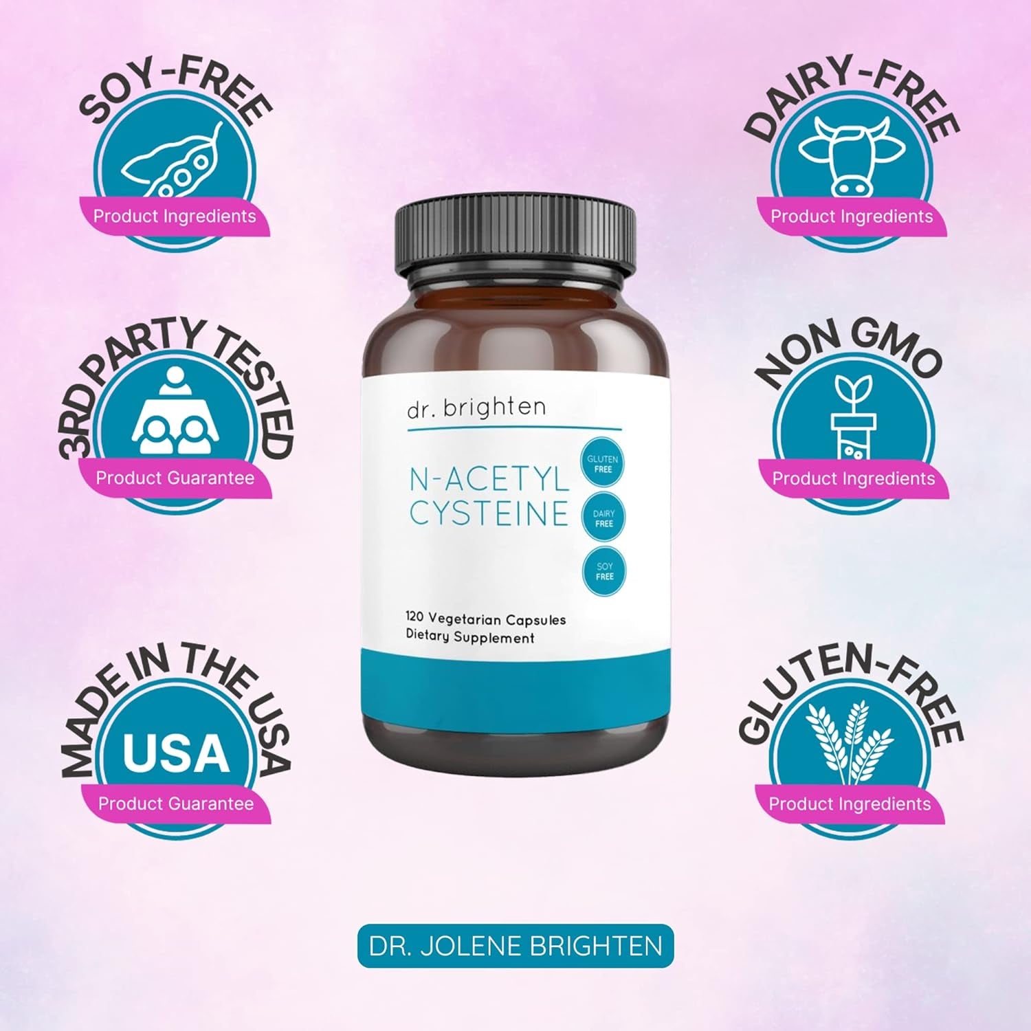 Dr. Brighten N-Acetyl-Cysteine (NAC) — Powerful Glutathione Precursor Amino Acid Supplement for Optimal Detoxification, Immune Function, and PCOS — 120 Capsules