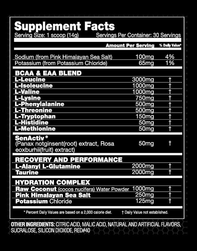 - ✅ POWERFUL FORMULA: Contains ALL 9 Essential Amino Acids. 7 Total Grams of BCAA’s and EAA’s L-Leucine, L-Isoleucine, L-Valine, L-Lysine, L-Phenylalanine, L-Tryptophan, L-Histidine & L-Methionine + 2g L-Alanyl L-Glutamine and 2g of Taurine & a hydration complex with Coconut Water Extract.