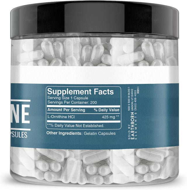 Earthborn Elements (200 Capsules L-Ornithine Hcl, Amino Acid, Protein Synthesis