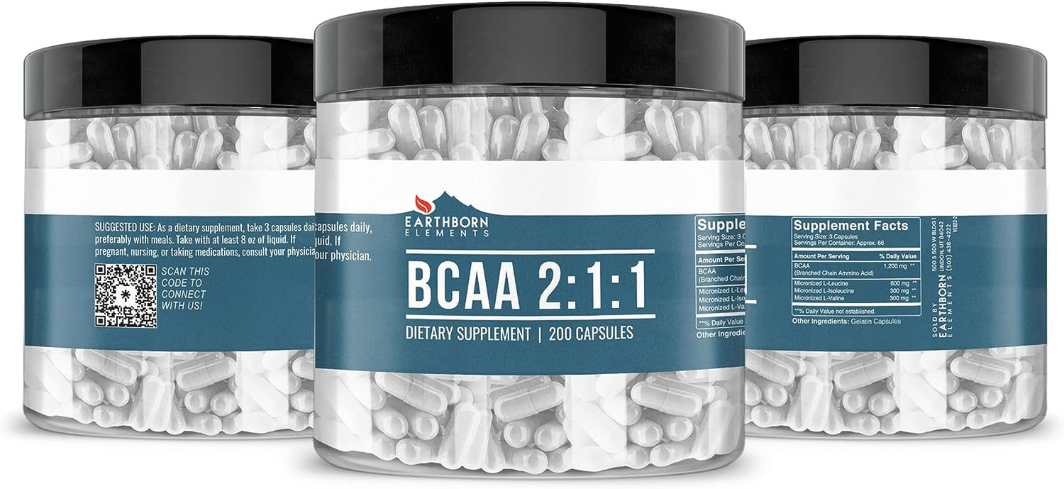 Earthborn Elements BCAA, 200 Capsules, Pure & Undiluted, No Additives