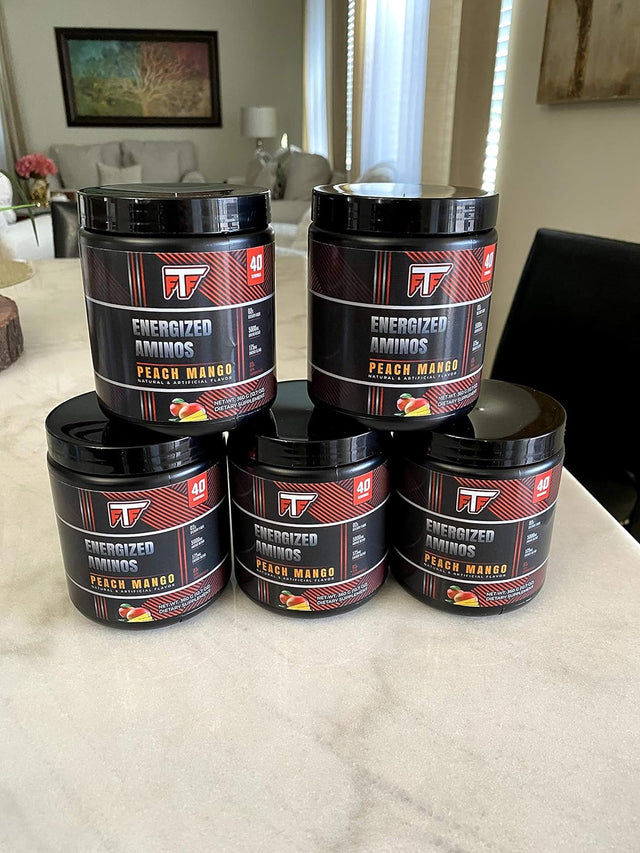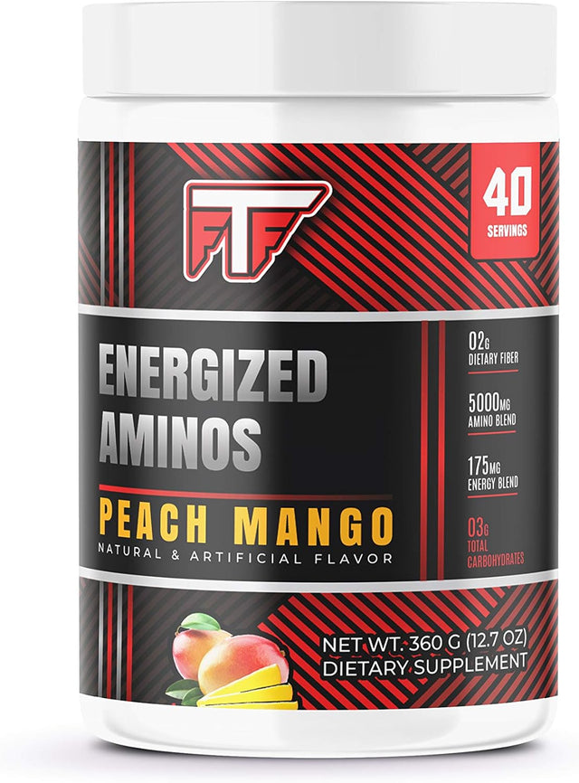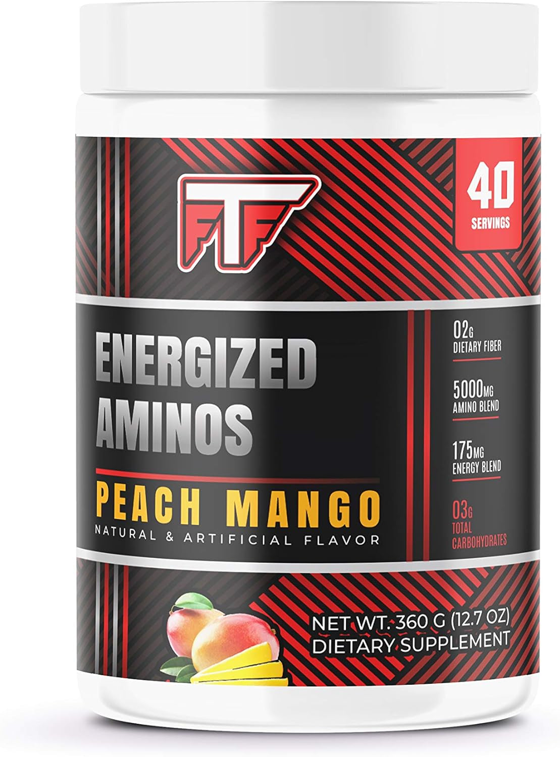 Energized AMINOS Peach Mango 360G Pre-Wokout, Green Tea, Caffeine, and Theobromine Energy Blend- 40 Servings
