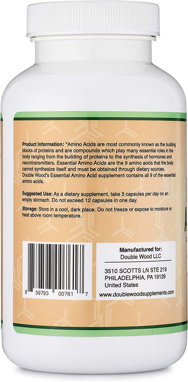 - Manufactured and Tested in the USA - Double Wood's Essential Amino Acid Capsules are manufactured and tested for safety right here in the USA