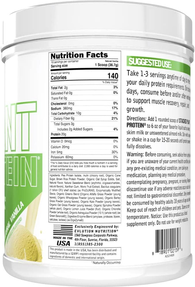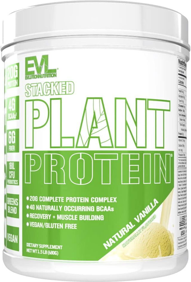 Evlution Nutrition Stacked Plant Protein Powder, Vegan, Non-Gmo, Gluten-Free, Probiotics, Bcaas, Fiber, Complete Plant-Based Protein Complex, 1.5 LB (Natural Vanilla) - Natural Vanilla is backordered and will ship as soon as it is back in stock.