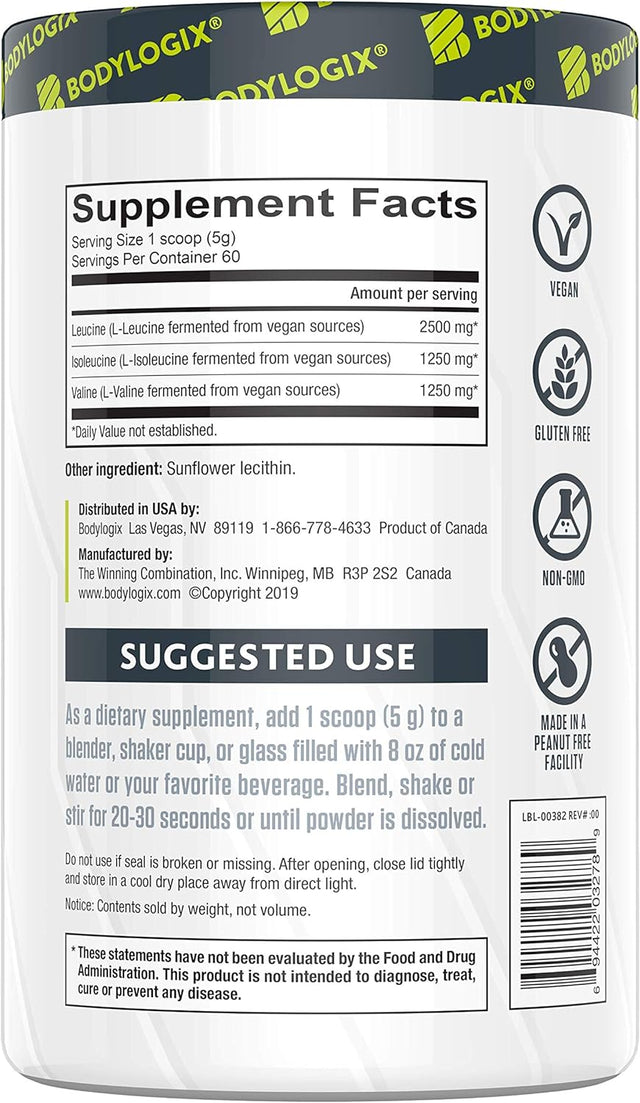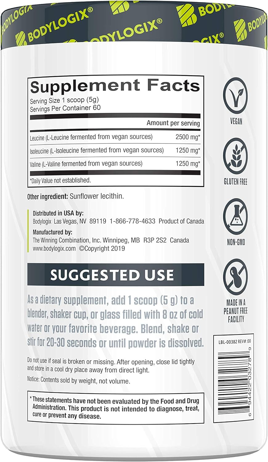 Containing 5000 mg of Branched Chain Amino Acids with an optimal 2: 1: 1 ratio of L-Leucine, L-Isoleucine and L-Valine, Bodylogix BCAA supports muscle growth and recovery. Maximize training and unleash athletic performance.
