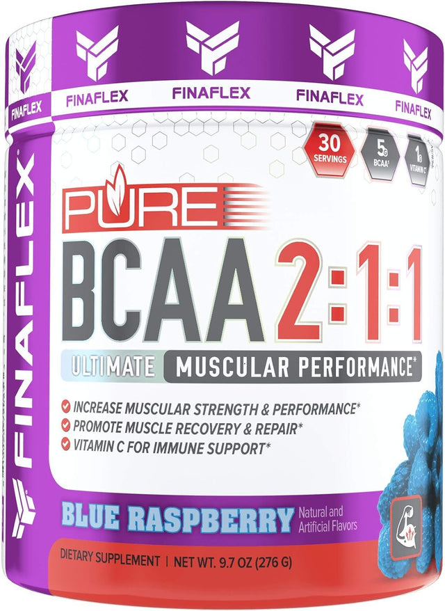 FINAFLEX Pure BCAA 2:1:1, Blue Raspberry - 9.7 Oz - Promotes Strength, Recovery & Performance - with 2:1:1 Ratio of Leucine, Isoleucine & Valine + Vitamin C - 30 Servings - Blue Raspberry is backordered and will ship as soon as it is back in stock.