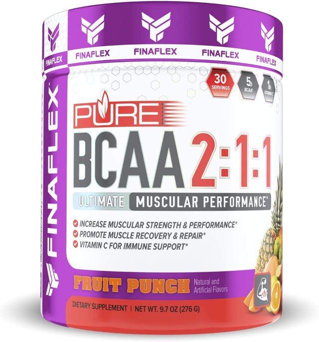 FINAFLEX Pure BCAA 2:1:1, Fruit Punch - 9.7 Oz - Promotes Strength, Recovery & Performance - with 2:1:1 Ratio of Leucine, Isoleucine & Valine + Vitamin C - 30 Servings