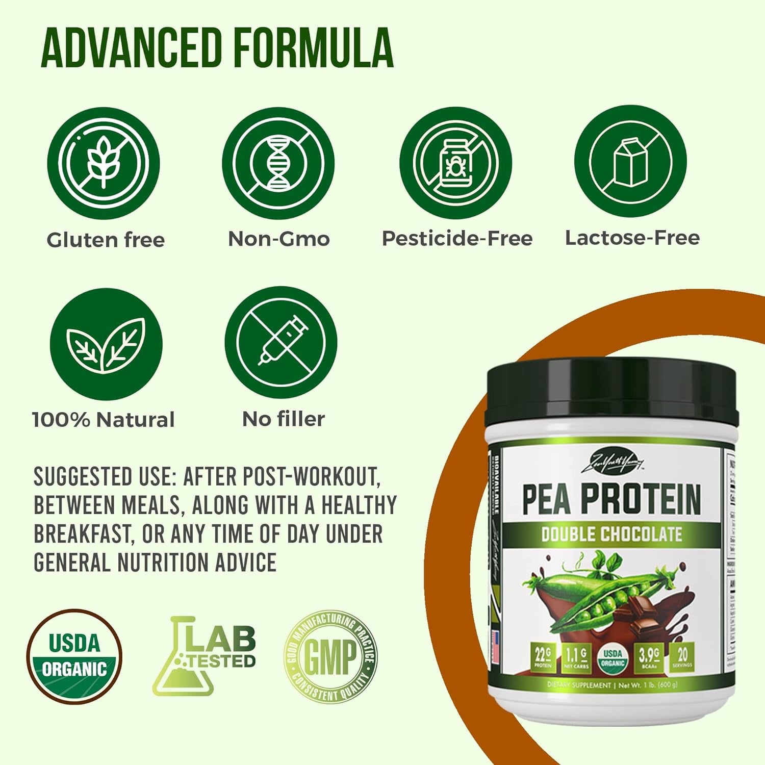 Flavored Organic Hydrolyzed Vegan Pea Protein Powder - All Natural Canada Grown Peas, Easy to Digest, Dairy Free, Gluten Free, Soy Free, Sugar Free, Non-Gmo with BCAA - Chocolate Flavor