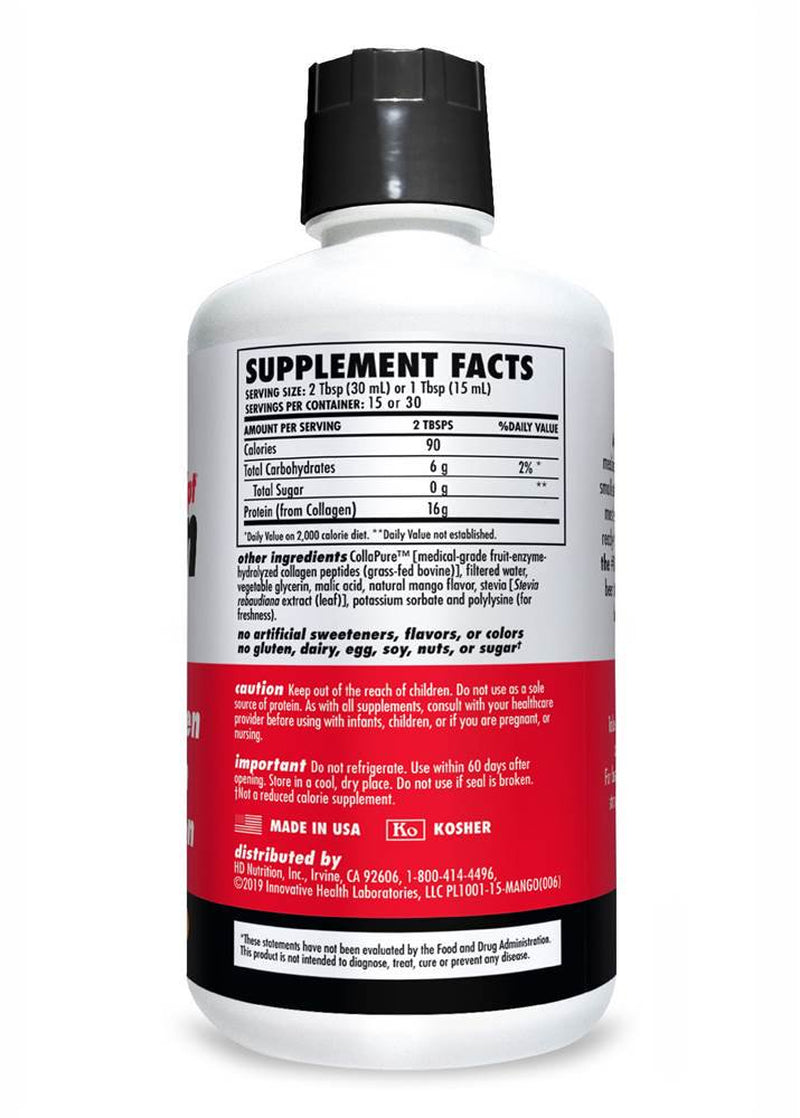 Health Direct AminoSculpt Sugar-Free Natural Mango is the original anti-aging collagen peptide supplement. It is the only Type 1 Collagen backed by over 30 years of medical use and clinical research. Plus, it's the first liquid collagen with no sodium benzoate or potassium sorbate. Around age 30, your body’s ability to produce collagen diminishes. You feel and see the effects of this collagen deficiency every day in the mirror. As the years go by, wrinkles form, skin dries, hair thins and dulls, nails become brittle, joints stiffen, and your body loses its muscle tone and shape. Aging is collagen loss. AminoSculpt Sugar-Free Natural Mango can help. Ninety percent of your body’s collagen is Type 1, and every serving of AminoSculpt Sugar-Free provides you with a highly concentrated dose of pure, rapidly absorbable, dipeptides and tripeptides from Type 1 Collagen. The amino acids in these peptides are precisely what your body needs to build and maintain healthy collagen, so you can look and feel younger than ever.
