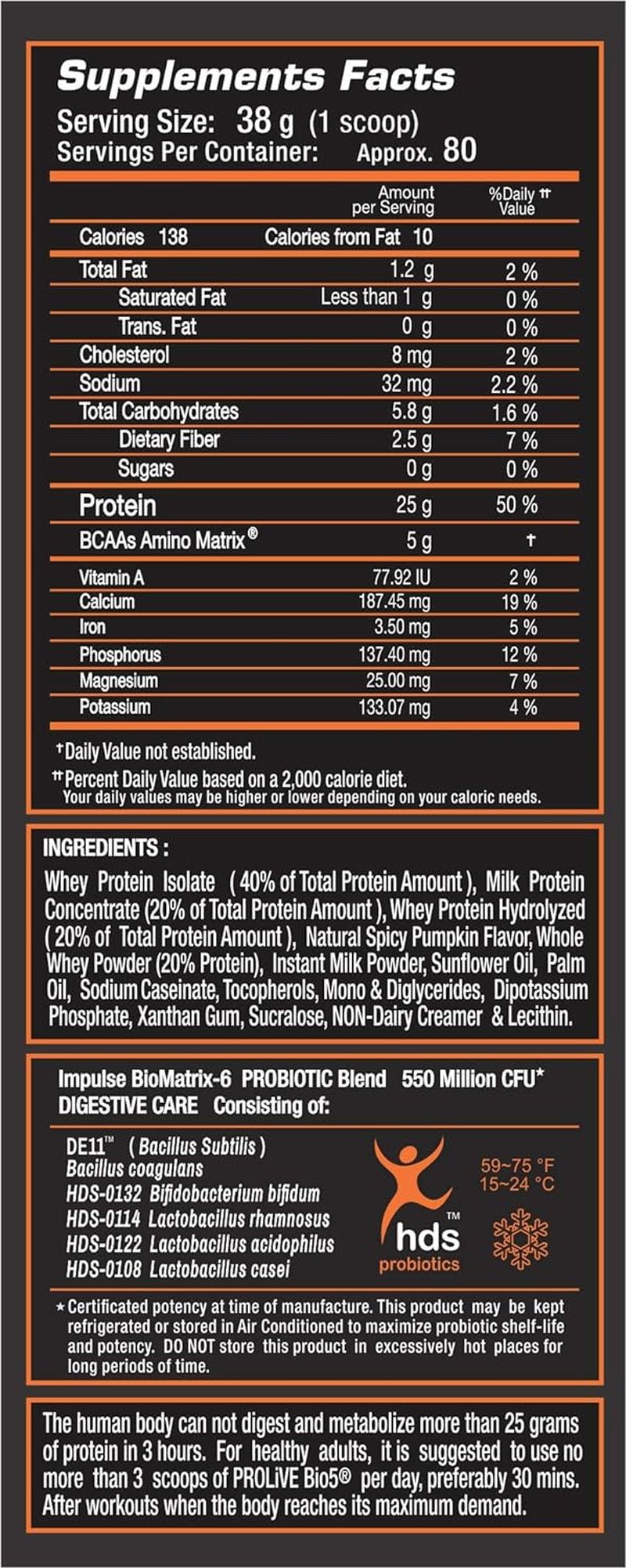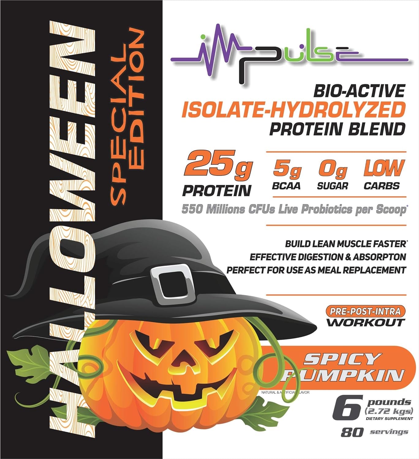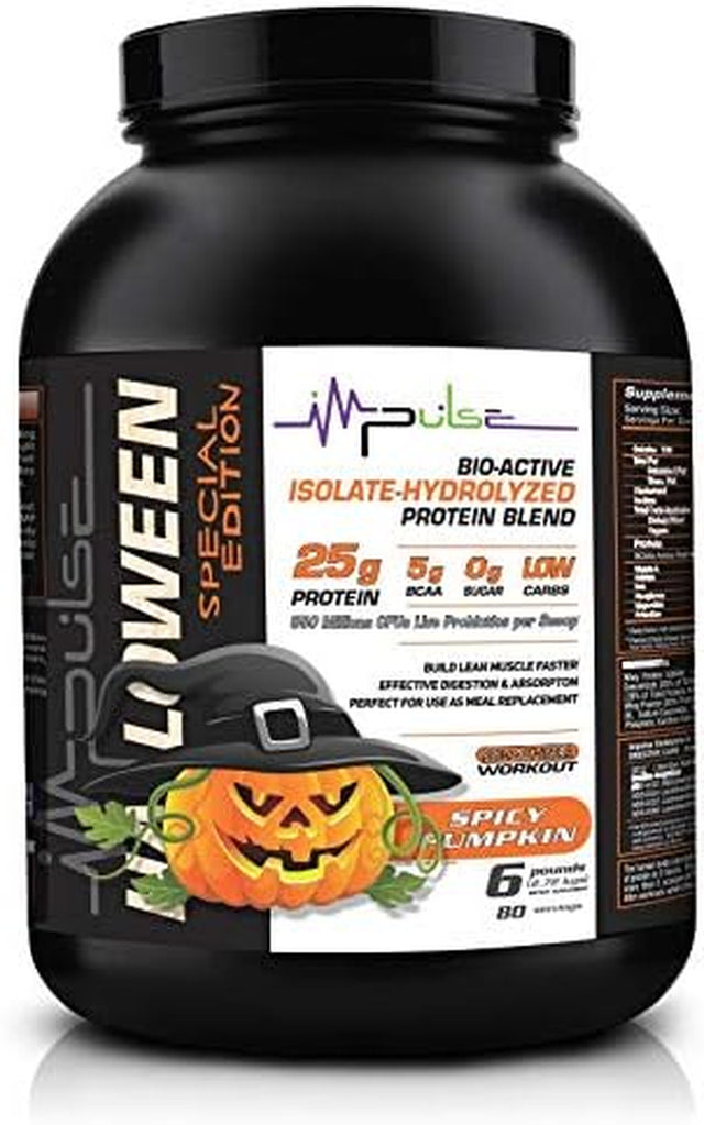 Impulse Supplements 25G Premium Protein Blend Low Carb with Whey Protein Concentrated +Whey Protein Isolate +Hydrolyzed Protein Powder -6 Lbs with 5G BCAA and Collagen, Non-Gmo. Spicy Pumpkin 6 LBSF