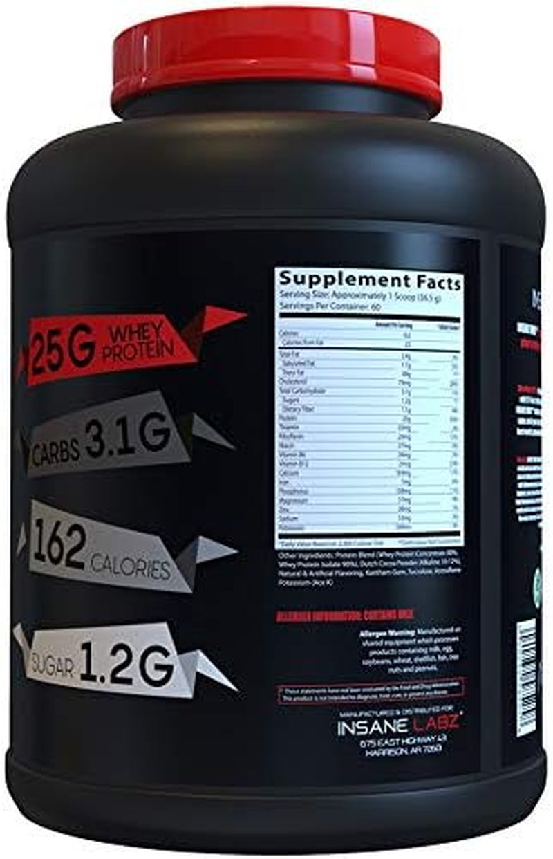 Insane Labz Insane Whey,100% Muscle Building Whey Protein, Post Workout, BCAA Amino Profile, Mass Gainer, Meal Replacement, 5Lbs, 60 Srvgs, (Chocolate)